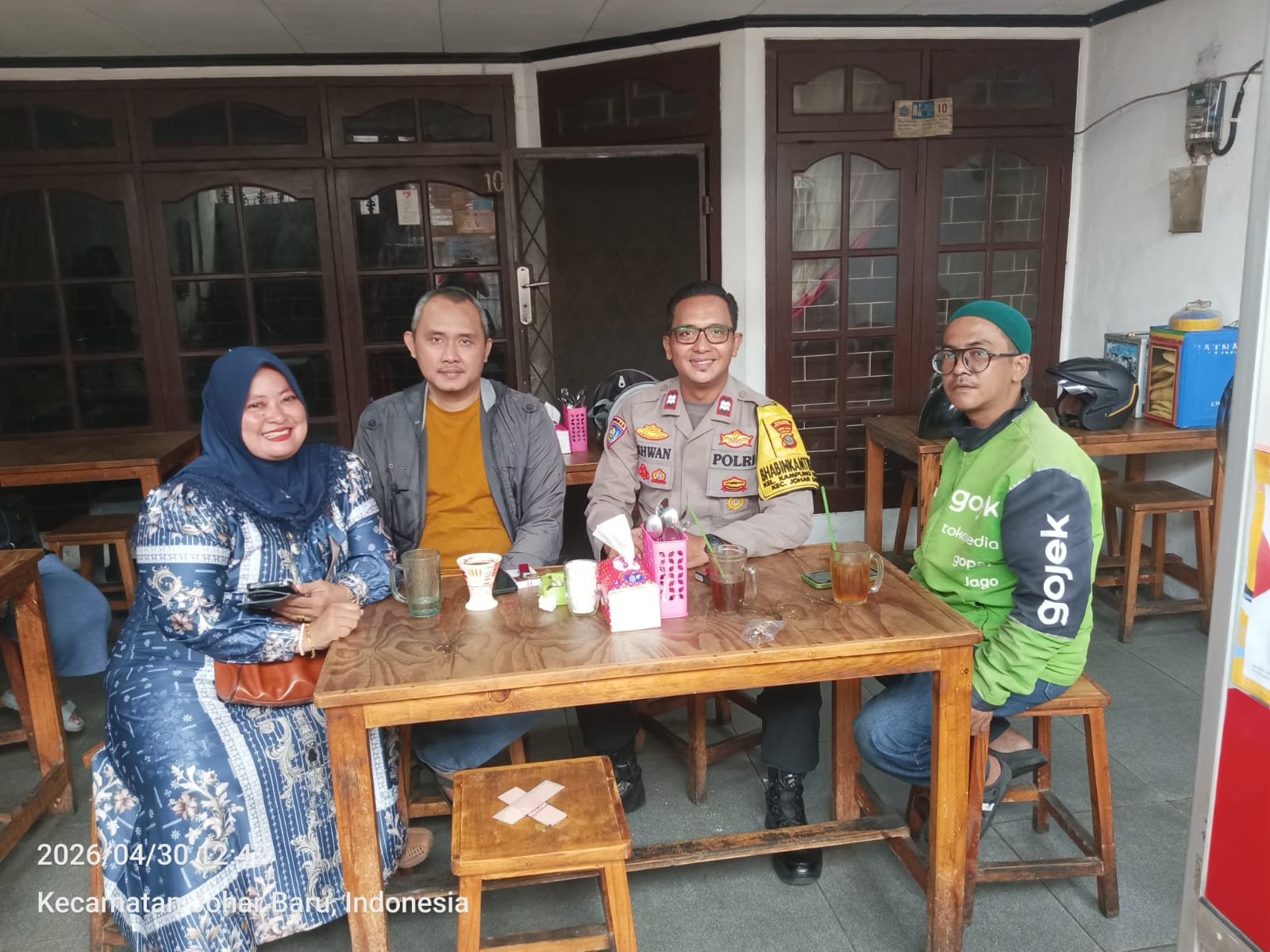 Dalam kegiatan tersebut, Bhabinkamtibmas melakukan sambang dan dialog langsung dengan warga, di antaranya Koordinator Lapangan Ojol Jaga Jakarta, Pak Imadudin, serta warga setempat, Bu Ita. Melalui komunikasi yang humanis, petugas mengajak masyarakat untuk bersama-sama menjaga kondusifitas lingkungan.