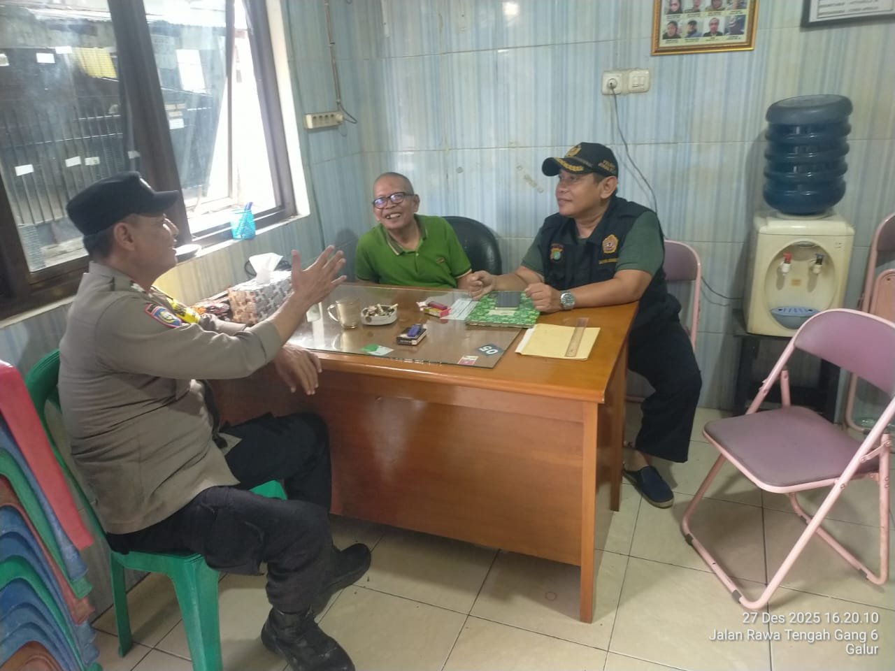 Jakarta Pusat – Dalam rangka menjaga situasi keamanan dan ketertiban masyarakat (kamtibmas) menjelang perayaan Tahun Baru 2026, jajaran Polsek Johar Baru melalui Bhabinkamtibmas Kelurahan Galur melaksanakan kegiatan sambang dan cooling system bersama tokoh masyarakat RW 06, Kelurahan Galur, Kecamatan Johar Baru, Jakarta Pusat, Sabtu (27/12/2025).