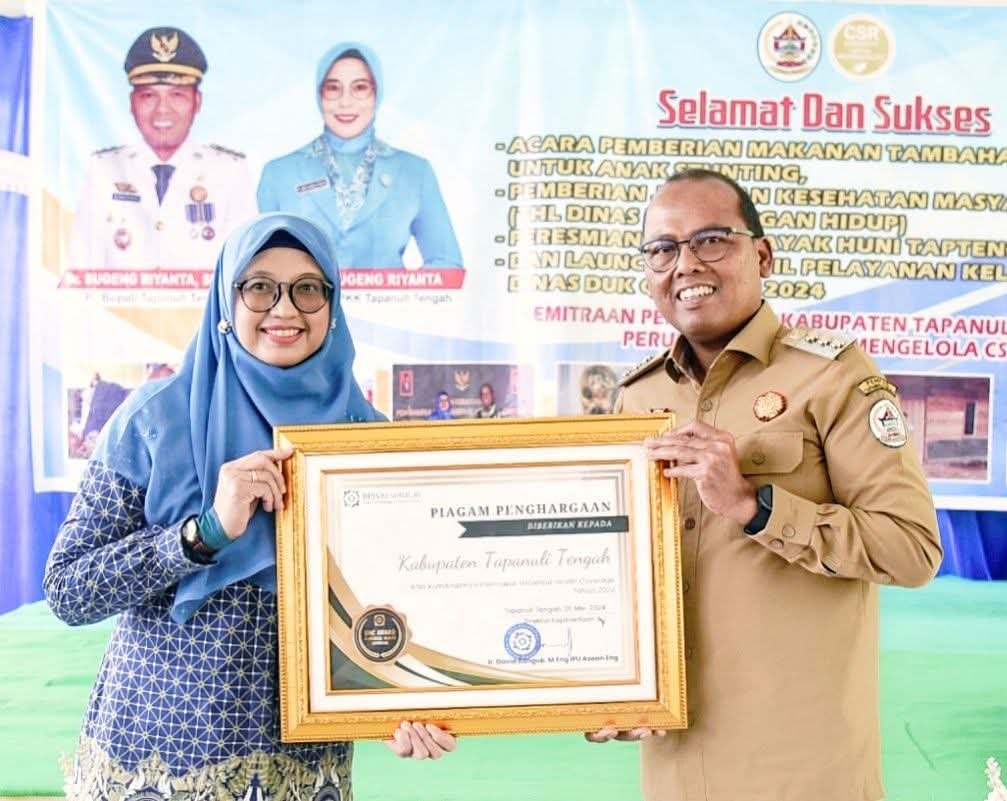 Penghargaan ini diraih atas upaya yang terus dilakukan Pemkab Tapteng dengan kemudahan akses pelayanan kesehatan bagi masyarakat, atas capaian 97,43% kepesertaan aktif Masyarakat Kabupaten Tapanuli Tengah per tanggal 1 Januari 2025, sebelumnya pada 8 Agustus 2024 di Jakarta Pemkab Tapteng juga mendapatkan UHC Award dari Kemenko PMK RI atas Capaian Cakupan Peserta BPJS Kesehatan Masyarakat Tapanuli Tengah sebesar 96,99%.