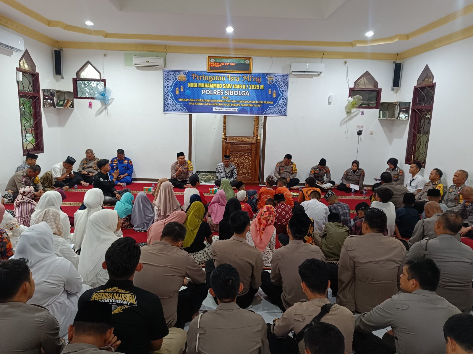 SIBOLGA – Kepolisian Resor Sibolga (Polres Sibolga), menggelar acara Peringatan Isra Mi’raj Nabi Besar Muhammad SAW Tahun 1446 H / 2025 M dengan tema “Hikmah Isra Mi’raj Nabi Besar Muhammad SAW Kita Tingkatkan Kualitas Ibadah dan Kinerja Guna Menjadi Polri Presisi Indonesia Maju “. Acara tersebut diselenggarakan di Mesjid Nurul Ikhlas Aspol Polres Sibolga Jalan Dr. Fl. Tobing Kelurahan Kota Baringin Kecamatan Sibolga Kota, Kota Sibolga, pada Kamis (30/01/2025), pukul 16.00 wib sampai dengan selesai.