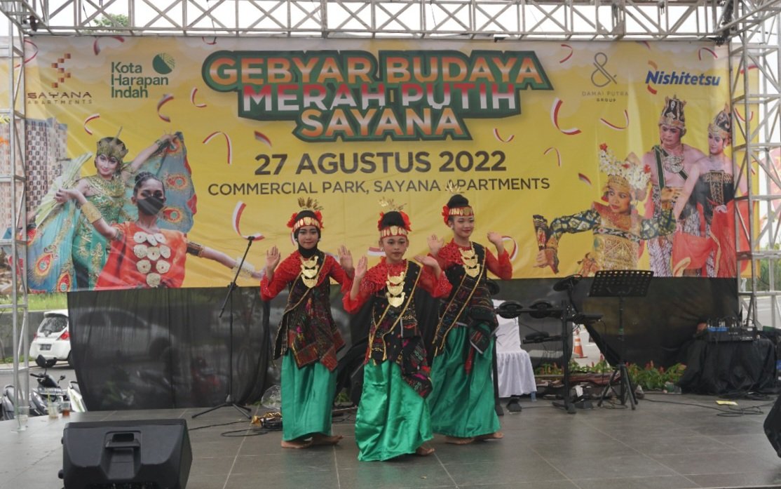 Kegiatan selanjutnya adalah Sayana Apartments Gebyar Budaya Merah Putih yang diselenggarakan pada tanggal 27 Agustus 2022 berlokasi di Commercial Park Sayana Apartments Kota Harapan Indah. Acara ini dimeriahkan oleh Festival Tari Budaya Nusantara, Parade Seni Budaya Nusantara, Bazar UMKM makanan/minuman tradisional dan Live Akustik. Festival tari budaya dari seluruh nusantara didukung oleh beberapa seniman lokal yaitu Sanggar Kesambet, Sanggar Tari Chika, Sanggar Tari Maulina dan Sanggar Tari Melati Art serta beberapa komunitas lokal antara lain Ketua Pawang Hujan Bekasi, Komunitas Wara-Wiri, Komunitas Saung Music dan Komunitas Reptil. “Hal ini sejalan dengan komitmen Damai Putra Group untuk terus menggandeng seniman dan komunitas lokal yang ada di sekitar kawasan yang dikembangkan sebagai salah satu bagian dari kegiatan CSR Damai Putra Peduli” ujar Monique Hardjoko selaku GM Corporate Marketing Product Communications Damai Putra Group.