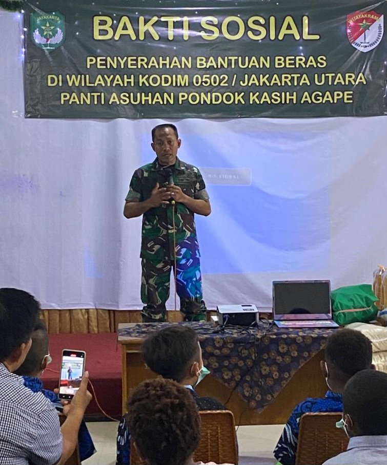 memerintahkan kepada jajaran para Dandim se DKI Jakarta untuk menggelar Bakti sosial di wilayah masing-masing. di Jakarta Utara khususnya selaku Dandim 0502/JU Kolonel Inf Frega Wenas Inkiriwang Phd, FHEA menggelar baksos berupa bantuan sembako di tiga titik yaitu Pondok kasih Agape Cilincing, Panti Asuhan Islam Cilincing dan Pondok singgah anak Cilincing Rabu ( 11/01/2023 ).