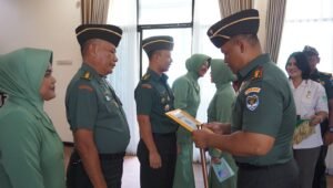 Jayakarta – Jakarta Utara. Bertempat di Aula Balam Makodim 0502/JU Jalan Yos Sudarso RT. 10 RW. 06 Kelurahan Sungai Bambu Kecamatan Tanjung Priok Jakarta Utara, Dandim 0502/JU Letkol Kav Tofan Tri Anggoro BS, pimpin kegiatan Korp Raport masuk dan pindah satuan serta purna tugas perwira Kodim 0502/JU pada Kamis (24/8/2023).