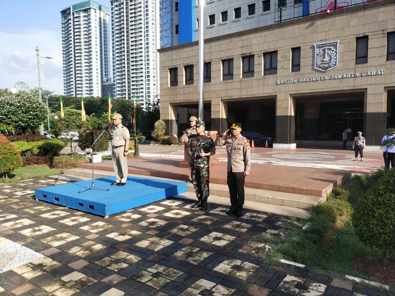 Hadir dalam Apel Dandim 0503/JB Letkol INF. E.S. Putra Siregar , S.I.P Wakapolres Metro Jakarta Barat AKBP. Saulalu, SIK, MH,Wakil Walikota Jakarta Barat Drs. Hendra Hidayat, M.A,Sekretaris Kota Jakarta Barat : Indra Patrianto, S.H, M.P.d,Para Pejabat Asisten Seko Jakarta Barat,Para Kepala Suku Dinas Kota Jakarta Barat,Para Kapolsek Jajaran Polres Jakarta Barat,Para Danramil Jajaran Kodim 0503/JB