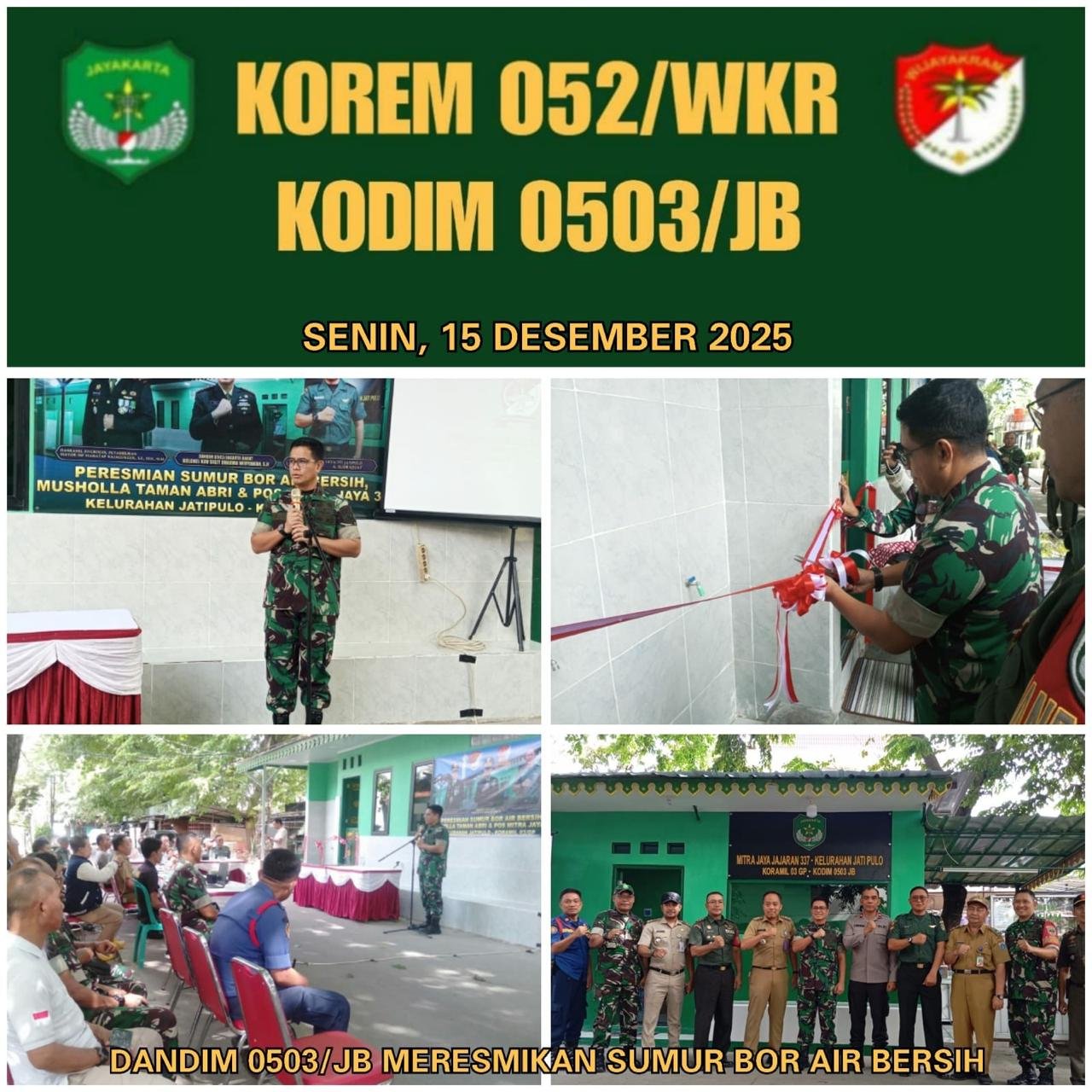 refubliknews.com,- Jakarta – Dandim 0503/JB Kolonel Kav Sigit Dharma Wiryawan SH meresmikan sumur bor air bersih mushola taman ABRI dan pos mitra Jaya 337, bertempat di Jl. Semangka Raya RT. 13/02 Kel. Jati Pulo, Kec. Palmerah, Jakarta Barat, Senin, 15/12/2025.