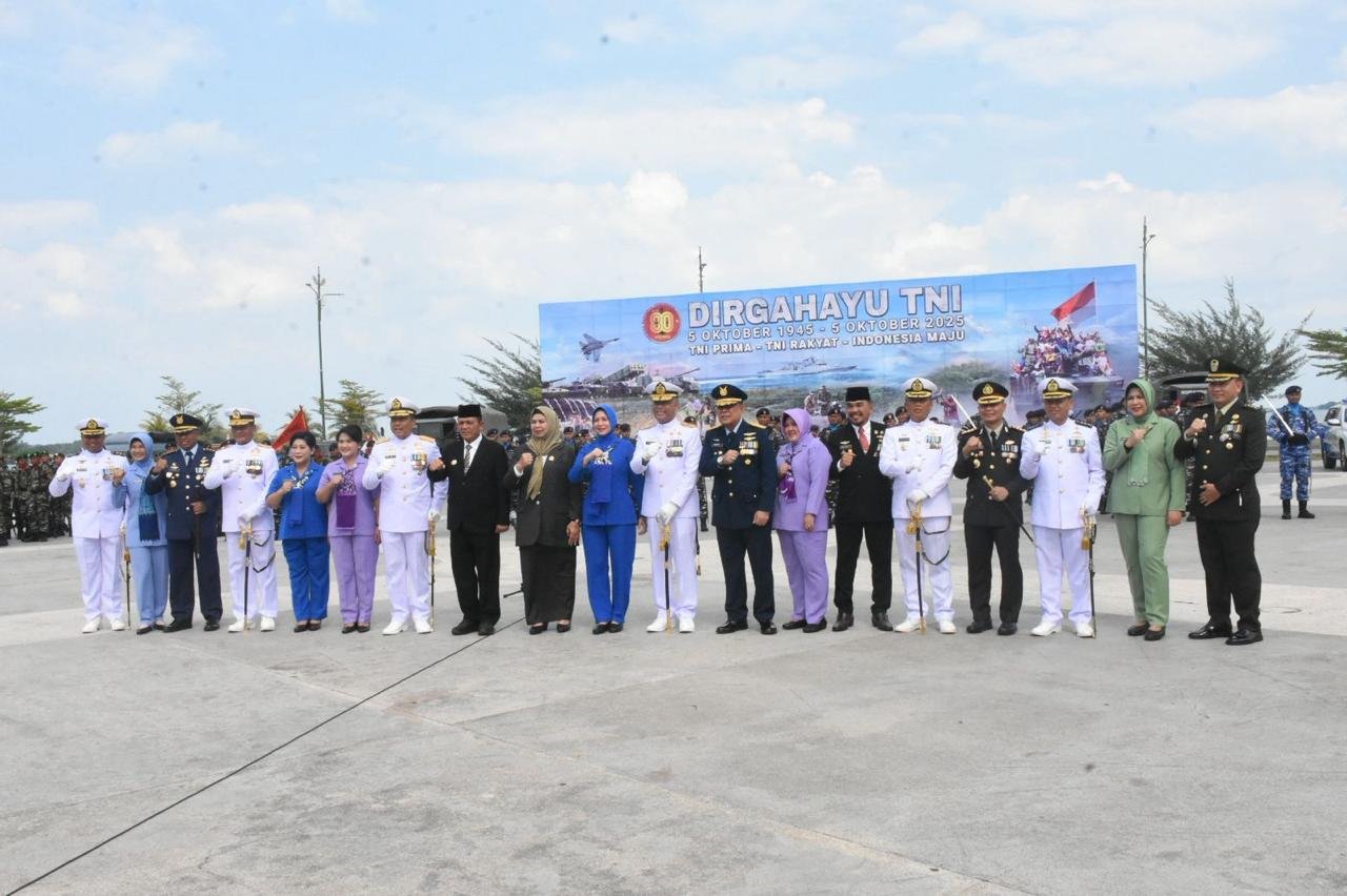refubliknews.com, || TNI AL, Bintan,- Komandan Lanal Bintan Kolonel Laut (P) Dr. Eko Agus Susanto, S.E., M.M., didampingi Ketua Cabang 5 Daerah Kodaeral IV Ny. Erni Eko Agus Susanto hadir pada Upacara Peringatan HUT Ke-80 Tentara Nasional Indonesia (TNI) yang digelar dengan khidmat di Kawasan Tugu Sirih Tanjungpinang, Minggu, (05/10/2025).