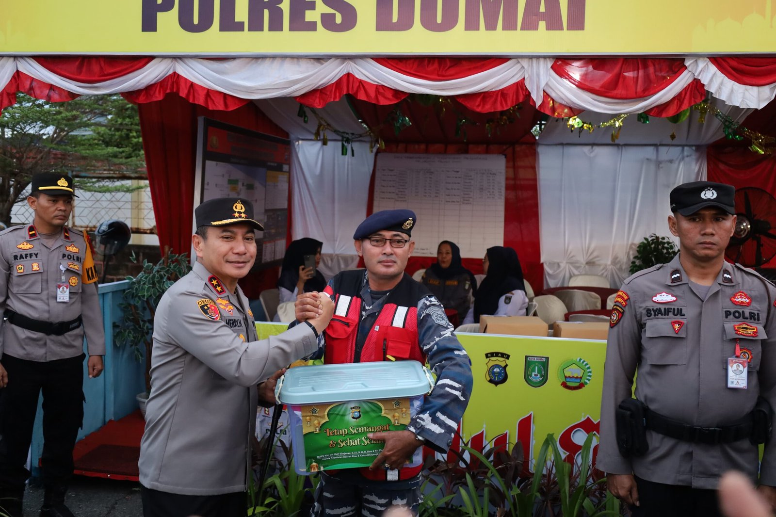 Disela-sela kunjungan ke Pos Pengamanan, Kapolda Riau bersama Danlanal Dumai serta Forkopimda yang hadir menyerahkan bingkisan Lebaran kepada prajurit dan personel yang sedang melaksanakan tugas jaga.