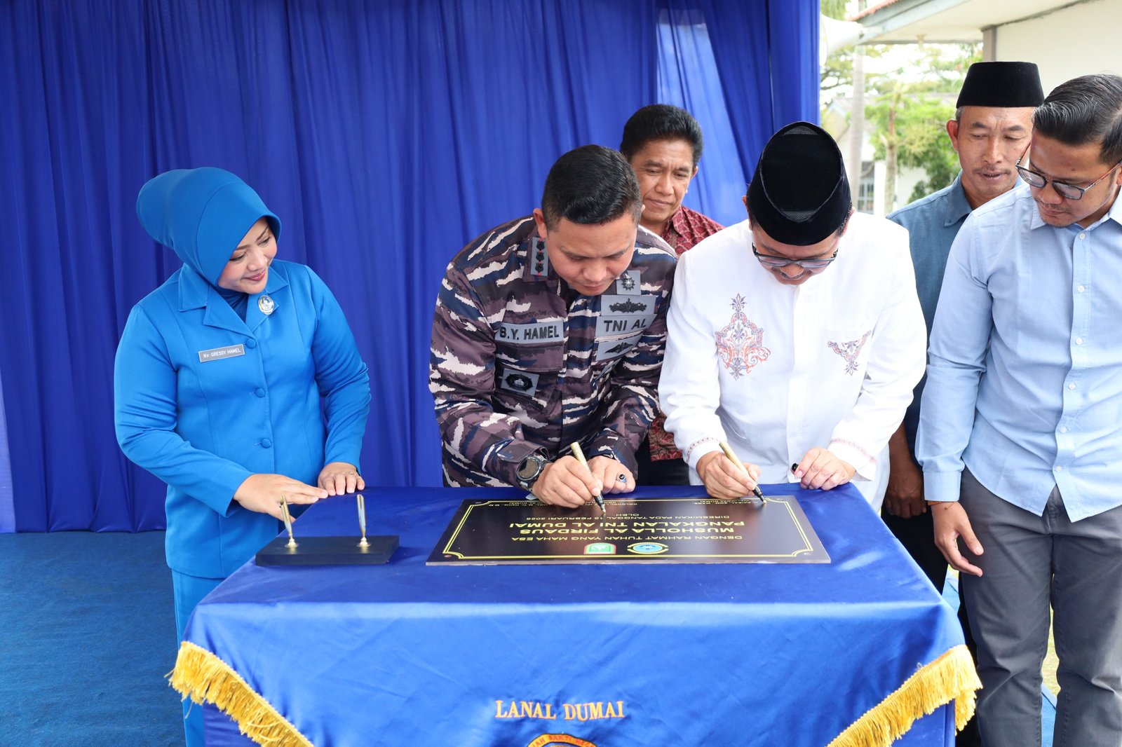 Peresmian kedua bangunan tersebut ditandai dengan Penandatanganan Prasasti Mushola Al Firdaus oleh Danlanal Dumai dan Walikota Dumai yang dalam hal ini diwakili oleh Sekda Kota Dumai H. Indra Gunawan, S.IP.