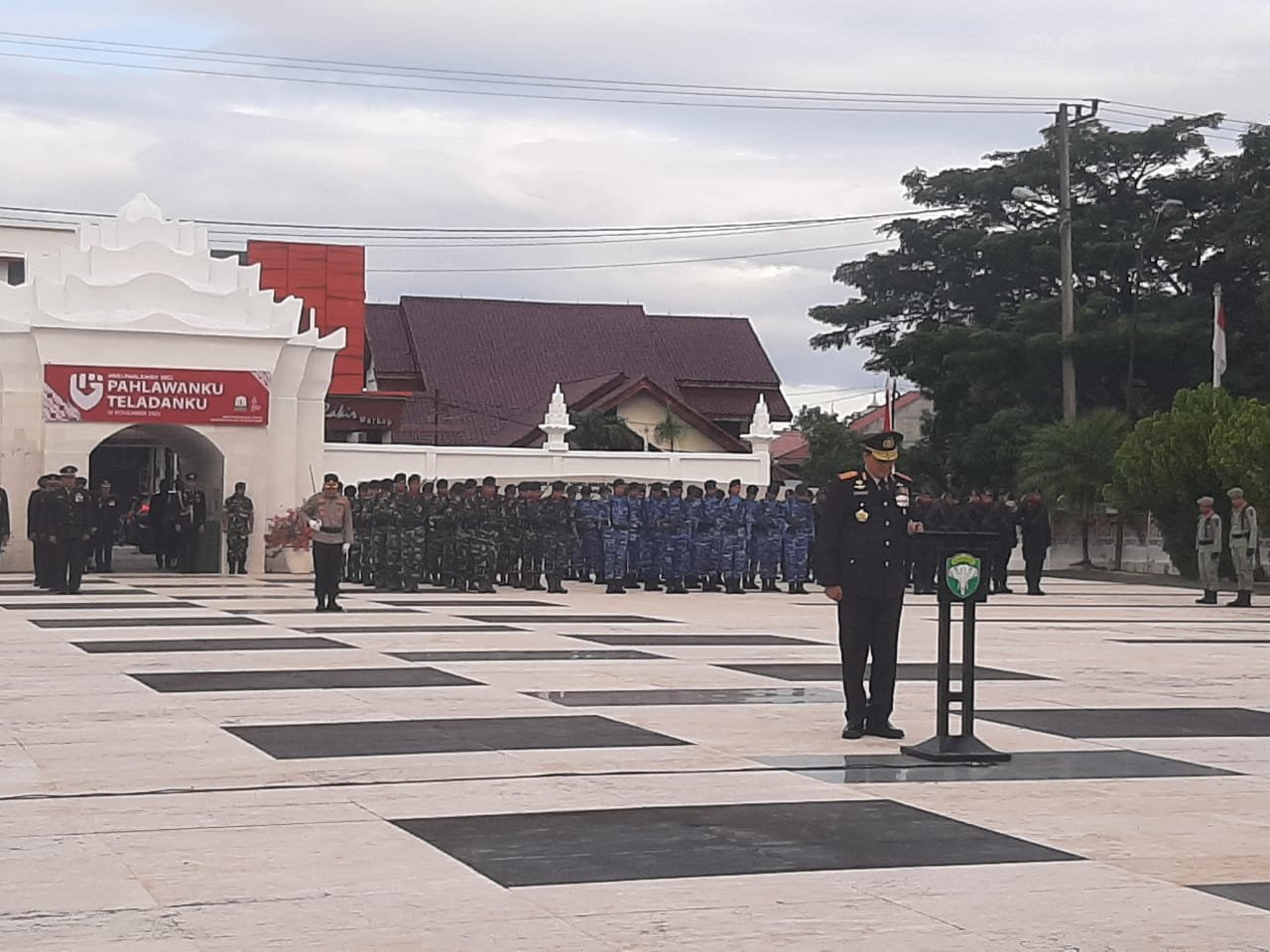 Bertindak selaku Inspektur Upacara Kapolda Aceh Drs. Ahmad Haydar, S.H., M.H., dan dihadiri oleh PJ. Gubernur Aceh diwakili Asisten 3 Dr. H. Iskandar, AP., S.Sos., M.Si., Pangdam IM diwakili Kasdam Brigjen TNI Hadi Basuki, S.Sos., M.M., M.Tr (Han)., Danlanal Sabang Kolonel Laut (P) Ali Setiandy, M.Tr (Han)., M.M., Danlanud SIM Kolonel Pnb Yoyon Kuscahyono, S.Sos., LO AU Kodam IM Kolonel Tek Muksalmina, LO AL Kodam IM Kolonel Marinir Wempi, M.Tr (Hanla)., M.M., Dandim 0101/KBA Letkol Inf Andy Bagus Diyan Arika, S.I.P., Kapolres Kota Banda Aceh Kombes Pol Joko Krisdiyanto, S.I.K., Ketua DPR Aceh diwakili Ibu Darwati A Gani, Kajati Banda Aceh Bambang Bachtiar, S.H., M.H., Ketua MAA Aceh Tengku H. Zainun Muhammad, Ketua MPU Aceh Tengku H. Faisal Ali, Para Purnawirawan dan Veteran.