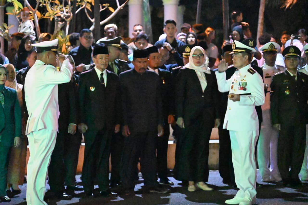 refubliknews.com, || TNI AL, Sabang,- Bertempat di Pendopo Walikota Sabang, Jalan Diponegoro, Gampong Kuta Ateuh, Kecamatan Sukakarya Kota Sabang, telah dilaksanakan Upacara Penetapan Waktu (Taptu) dan Pawai Obor dalam rangka menyambut Hari Ulang Tahun Ke-80 Republik Indonesia. Bertindak sebagai Inspektur Upacara Komandan Lanal Sabang Kolonel Laut (P) Sadimin, S.E., M.Tr.Opsla., dan Komandan Upacara Kaur Klinik Rumkital J. Lilipory Lettu Laut (K) Cholid Akbar Alchudri, S, FARN. APT. yang dihadiri oleh Walikota Sabang H. Zulkifli H. Adam serta sejumlah pejabat di lingkungan Pemko Sabang dan Forum Koordinasi Pimpinan Daerah (Forkopimda) Kota Sabang, Sabtu (16/08/2025).