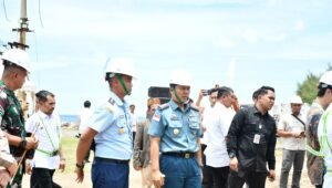 refubliknews.com, – TNI AL, Sabang,- Komandan Lanal Sabang (Danlanal Sabang) Kolonel Laut (P) Gita Muharam, M.Sc., beserta Unsur Forkopimda Sabang menyambut Kedatangan Menteri Kelautan dan Perikanan RI Ir. Sakti Wahyu Terenggono, M.M., beserta rombongan dalam rangka Ground Breaking Pembangunan Pelabuhan Perikanan Ie Meule Sabang menggunakan Pesud PK-YRA, bertempat di Lanud Maimun Saleh, Ujong Kareung, Kecamatan Sukajaya, Kota Sabang, Senin (26/08/2024).