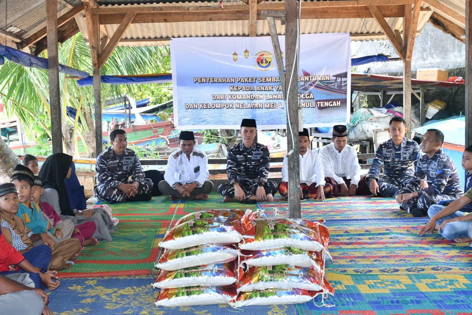 TNI AL, Sibolga,- Masih dalam rangkaian kegiatan menyambut Hari Raya Idul Fitri 1445 H, Komandan Lanal Sibolga Letkol Laut (P) Robiyanto, S.H., M.Tr. Hanla., bersinergi dengan Kelompok Nelayan Mela memberikan bantuan sembako kepada para anak yatim Mela II di Pondok Nelayan Mela II, Kecamatan Tapian Nauli, Kabupaten Tapteng, Jum’at (05/04/2024).