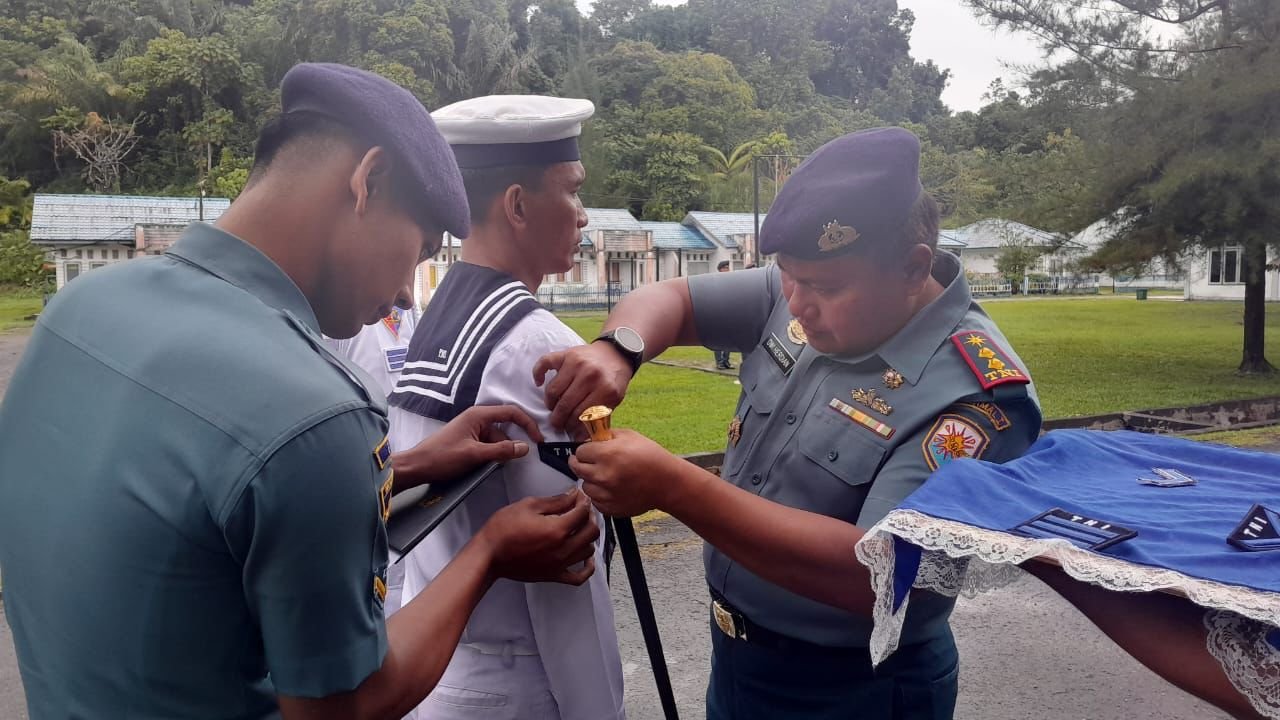 TNI AL, Simeulue,- Komandan Pangkalan TNI AL Simeulue Letkol Laut (P) Dwi Herdian Saputra, M.Tr.Opsla., pimpin acara Kenaikan Pangkat Perwira dan Tamtama Lanal Simeulue, Senin (02/10/2023).