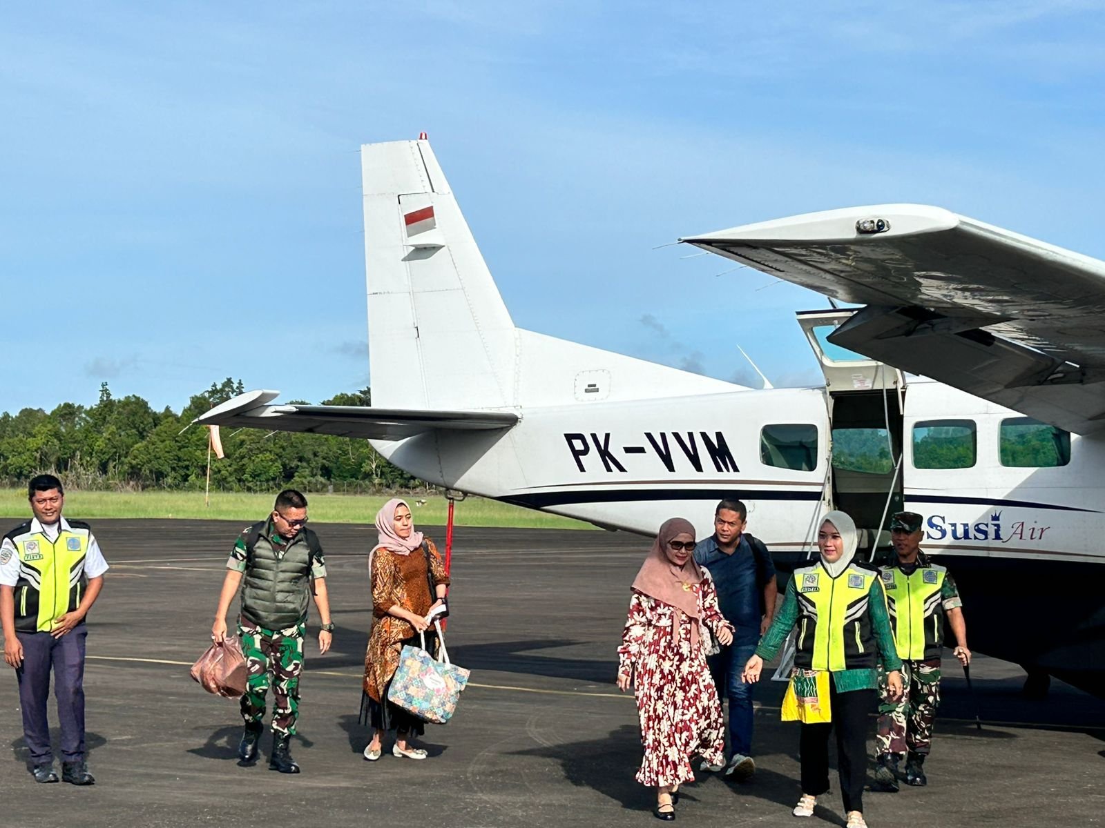refubliknews.com TNI AL, Simeulue,- Komandan Pangkalan TNI AL Simeulue Letkol Laut (P) Oyu Mulia Sukmana, S.T., M.T., M.Tr.Opsla., didampingi Ketua Jalasenastri Cabang 8 Korcab I DJA I Ny. Meylina Oyu Mulia, menghadiri acara Penyambutan Danrem 012/Teuku Umar Kolonel Inf Benny Rahadian, S.E., M.Han., beserta istri di Bandar Udara Lasikin, Kecamatan Teupah Tengah, Kabupaten Simeulue, Kamis (28/11/2024).