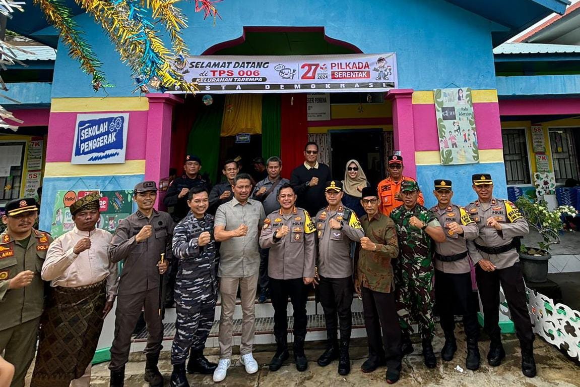 refubliknews.com, – TNI AL, Kepulauan Anambas,- Dalam rangka memastikan keamanan dan ketertiban pelaksanaan Pemilihan Kepala Daerah di Kabupaten Kepulauan Anambas, Danlanal Tarempa Letkol Laut (P) Ari Sukmana, S.E., M.Tr.Opsla., bersama jajaran Forkompimda Kabupaten Kepulauan Anambas melaksanakan peninjauan di tiap-tiap Tempat Pemungutan Suara (TPS) yang berada di Kota Tarempa, Kabupaten Kepulauan Anambas, Rabu (27/11/2024).