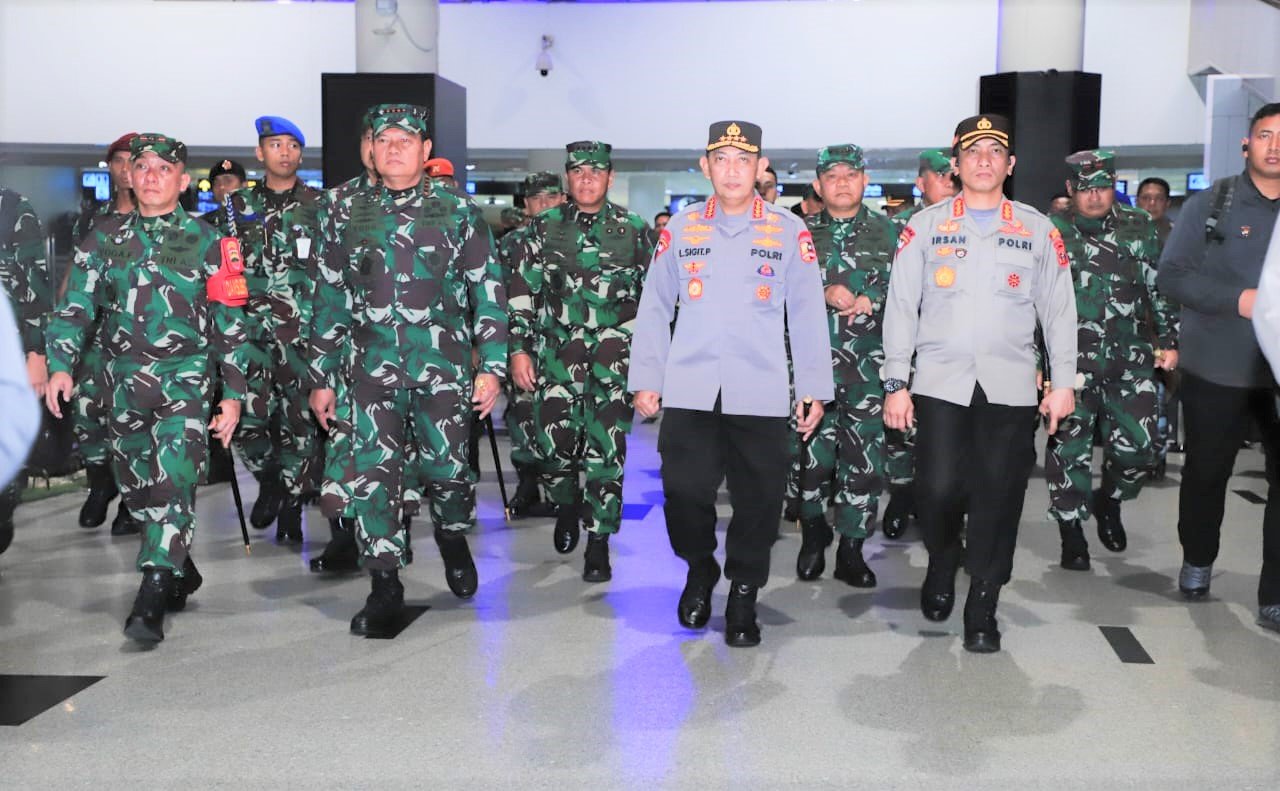 TNI AL, Belawan,- Komandan Pangkalan Utama TNI Angkatan Laut I (Danlantamal I) Laksamana Pertama TNI Johanes Djanarko Wibowo bersama Forkopimda Sumut menyambut Panglima TNI Laksamana TNI Yudo Margono, S.E., M.M., C.S.F.A., dan Kapolri Jenderal Polisi Drs. Listyo Sigit Prabowo, M.Si., di Bandara Udara Internasional Kualanamu, Deliserdang, Sumatera Utara, Rabu (08/02/2023).