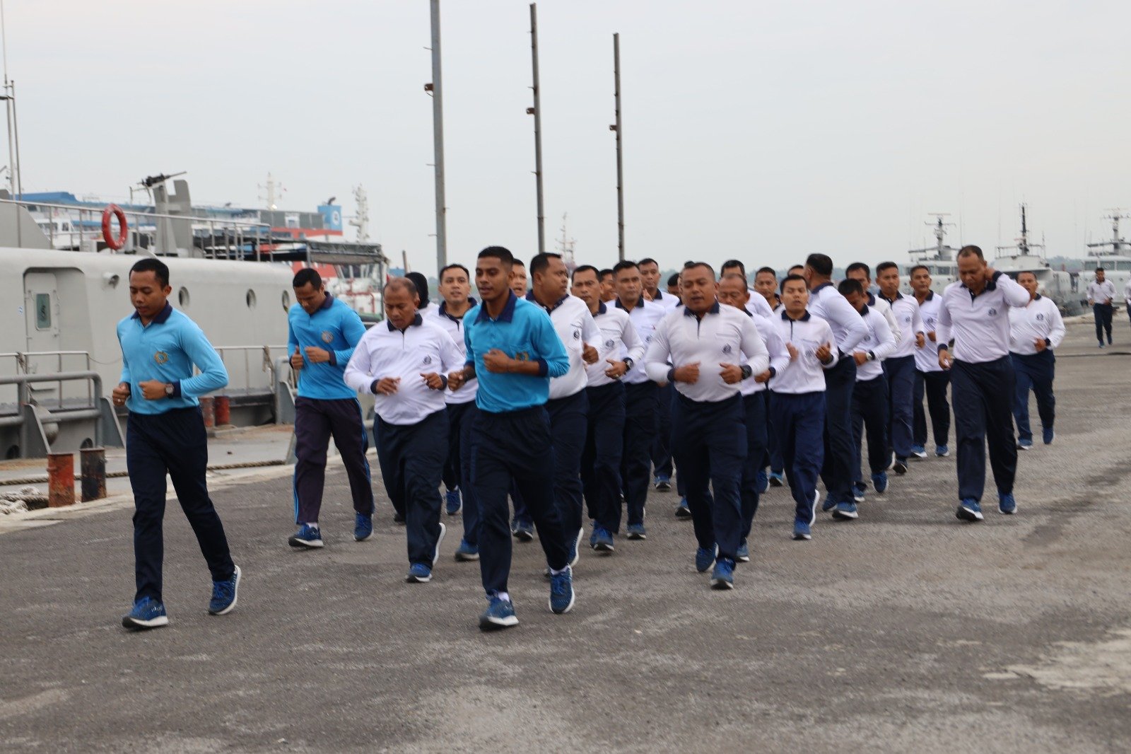 TNI AL, Belawan,- Komandan Pangkalan Utama TNI Angkatan Laut I (Danlantamal I) Laksamana Pertama TNI Dores Afrianto Ardi, S.E., M.Si., M.Han., CHRMP., didampingi Ketua Korcab I DJA I Ny. Santhi Dores Afrianto, beserta Keluarga Besar Lantamal I dan Yonmarhanlan I melaksanakan olahraga bersama, bertempat di Lapangan Apel Mako Lantamal I, Jalan Serma Hanafiah No. 01, Belawan, Sumataera Utara, Selasa (23/1/2024).