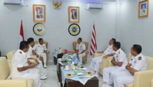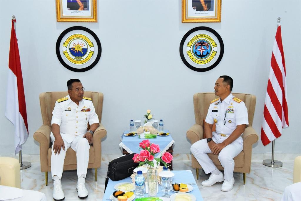 TNI AL, Belawan,- Panglima Komando Armada I Laksamana Muda TNI Erwin S. Aldedharma, didampingi Danlantamal I Laksma TNI Johanes Djanarko Wibowo dan Danguskamla Armada I Laksma TNI Isswarto menerima kunjungan Courtesy Call (CC) Panglima Wilayah 1 TLDM Malaysia Rear Admiral Farizal Myeor beserta rombongan, bertempat di Loby Gedung Utama Mako Lantamal I Belawan, Medan, Sumatera Utara, Rabu (01/03/2023).