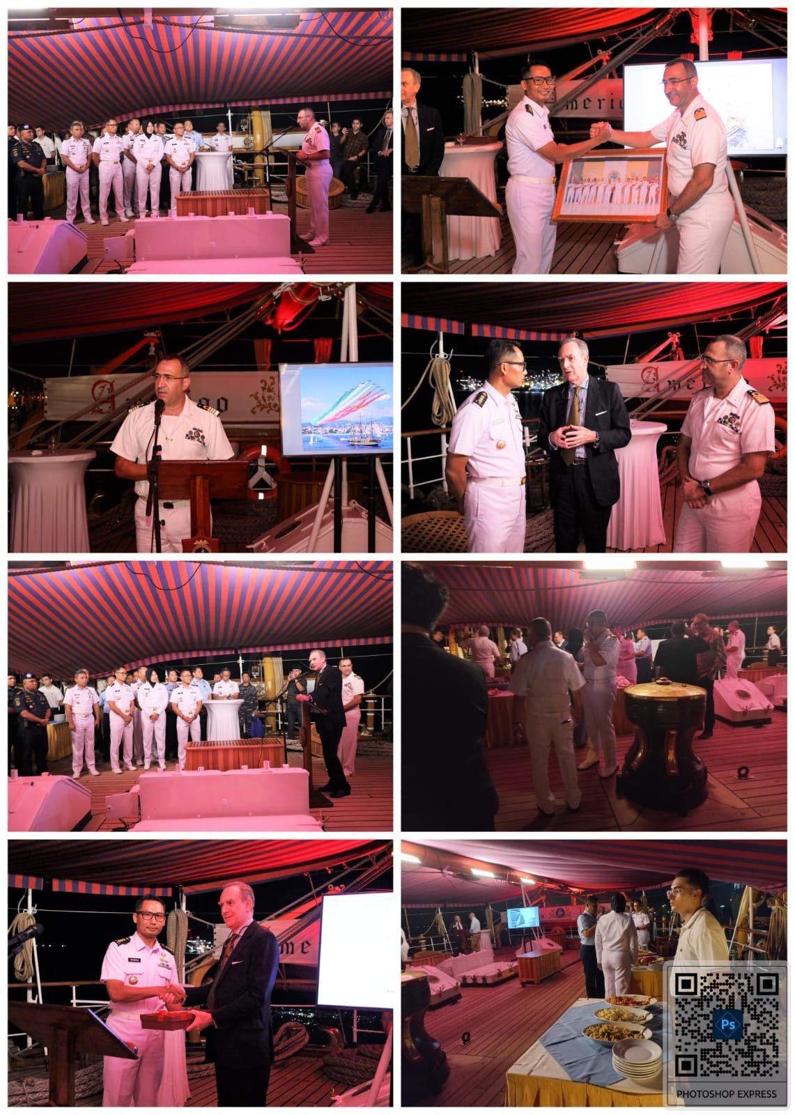 Kapten Kapal ITS Amerigo Vespucci, Captain (Navy) Giuseppe Lai menyambut kehadiran para pejabat dari Lantamal I Belawan serta undangan lainnya dan mengucapkan terima kasih telah menyempatkan diri untuk hadir pada acara deck reception ini.
