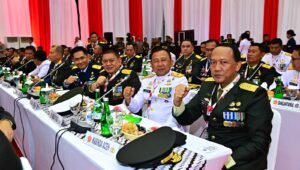 TNI AL, Belawan,- Komandan Pangkalan Utama TNI AL I (Danlantamal I) Brigjen TNI (Mar) Jasiman Purba, S.E., CHRMP., menghadiri Rapat Pimpinan (Rapim) TNI-Polri dipimpin Presiden RI Joko Widodo, dihadiri Menteri Koordinator Bidang Politik, Hukum, dan Keamanan (Menko Polhukam) Dr. (H.C.) Hadi Tjahjanto, S.I.P., Menteri Pertahanan (Menhan) Prabowo Subianto, Kepala Staf Kepresidenan (KSP) Dr. Moeldoko, S.I.P., M.A., Panglima TNI Jenderal TNI Agus Subiyanto, S.E., M.Si., Kapolri Jenderal Polisi Drs. Listyo Sigit Prabowo, M.Si., Kepala Staf Angkatan Darat (Kasad) Jenderal TNI Maruli Simanjuntak, M.Sc., Kepala Staf Angkatan Laut (Kasal) Laksamana TNI Dr. Muhammad Ali, S.E., M.M., M.Tr.Opsla., dan Kepala Staf Angkatan Udara (Kasau) Marsekal TNI Fadjar Prasetyo, S.E., M.P.P., C.S.F.A. dengan Tema “TNI-Polri Siap Wujudkan Pertahanan Keamanan Untuk Indonesia Maju”, bertempat di Gedung Olah Raga (GOR) Ahmad Yani Mabes TNI Cilangkap, Jakarta Timur, Rabu (28/2/2024).