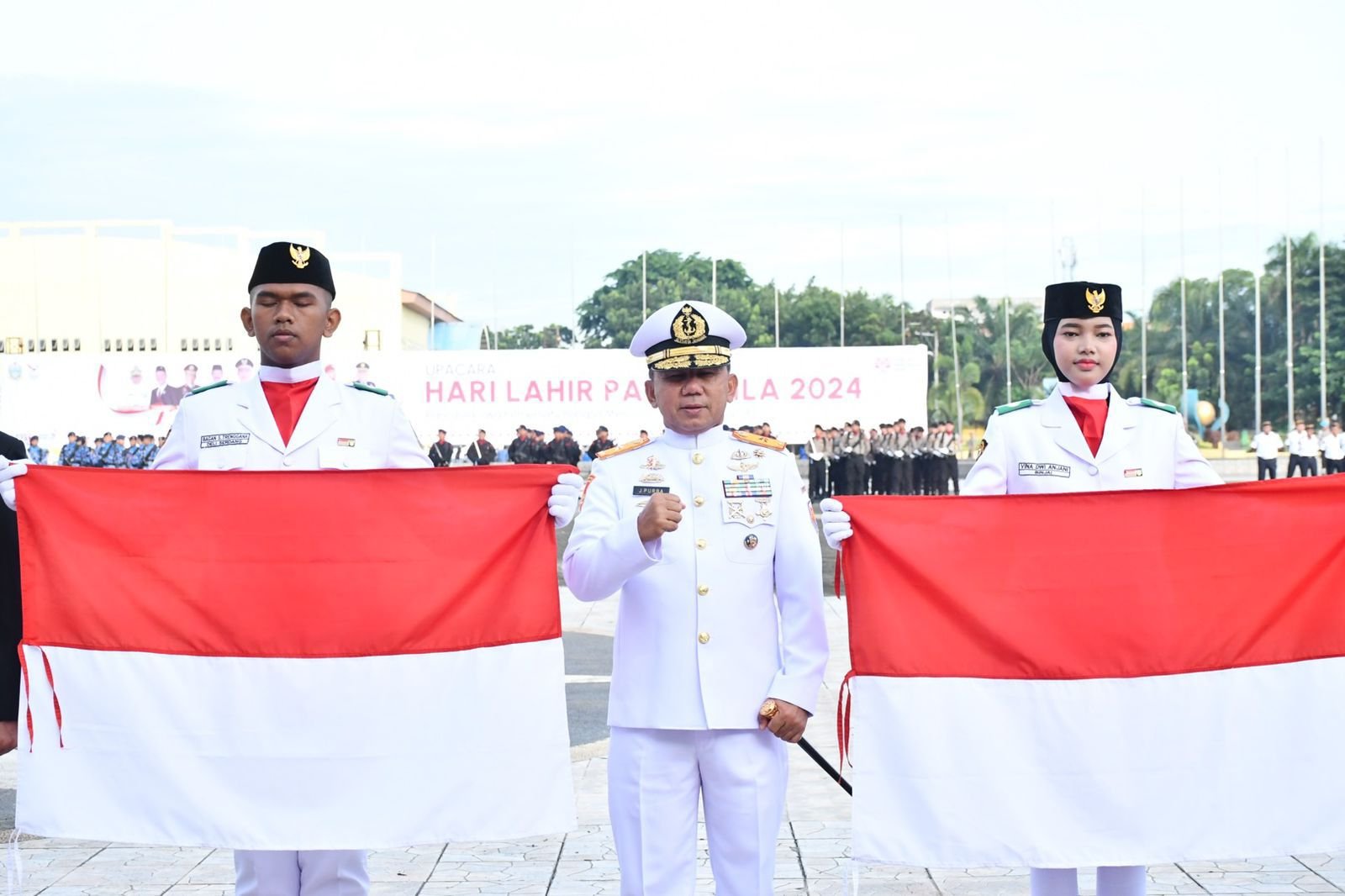 TNI AL, Belawan,- Komandan Pangkalan Utama TNI Angkatan Laut I (Danlantamal I) Brigjen TNI (Mar) Jasiman Purba, S.E., CHRMP., beserta Forkopimda Sumatera Utara, Wadan Lantamal I, dan para Pejabat Utama Lantamal I menghadiri Upacara Hari Kelahiran Pancasila Tahun 2024, dipimpin oleh Pj. Gubernur Sumatera Utara Hassanudin, bertempat di Lapangan Astaka, Jalan Willem Iskandar, Deli Serdang, Sumatera Utara, Sabtu (01/6/2024).