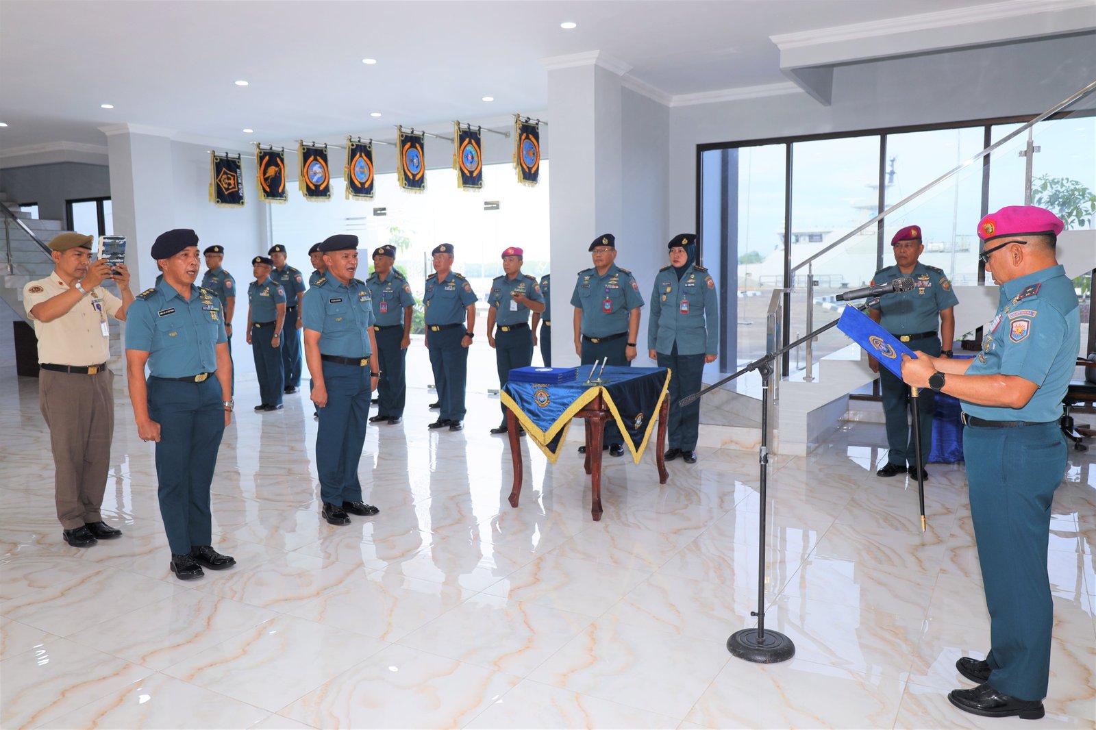 refubliknews.com, – TNI AL, Belawan,- Komandan Pangkalan Utama TNI Angkatan Laut I (Danlantamal I) Brigjen TNI (Mar) Jasiman Purba, S.E., CHRMP., memimpin Acara Pengukuhan Jabatan Kadisang Lantamal I Letkol Laut (T) Heldi Gustiar dan Kafasharkan Lantamal I Letkol Laut (T) Febriawan Syawal, S.STPi., bertempat di Lobby Gedung Utama Mako Lantamal I, Jalan Serma Hanafiah No.01 Belawan, Sumatera Utara, Kamis (10/10/2024).
