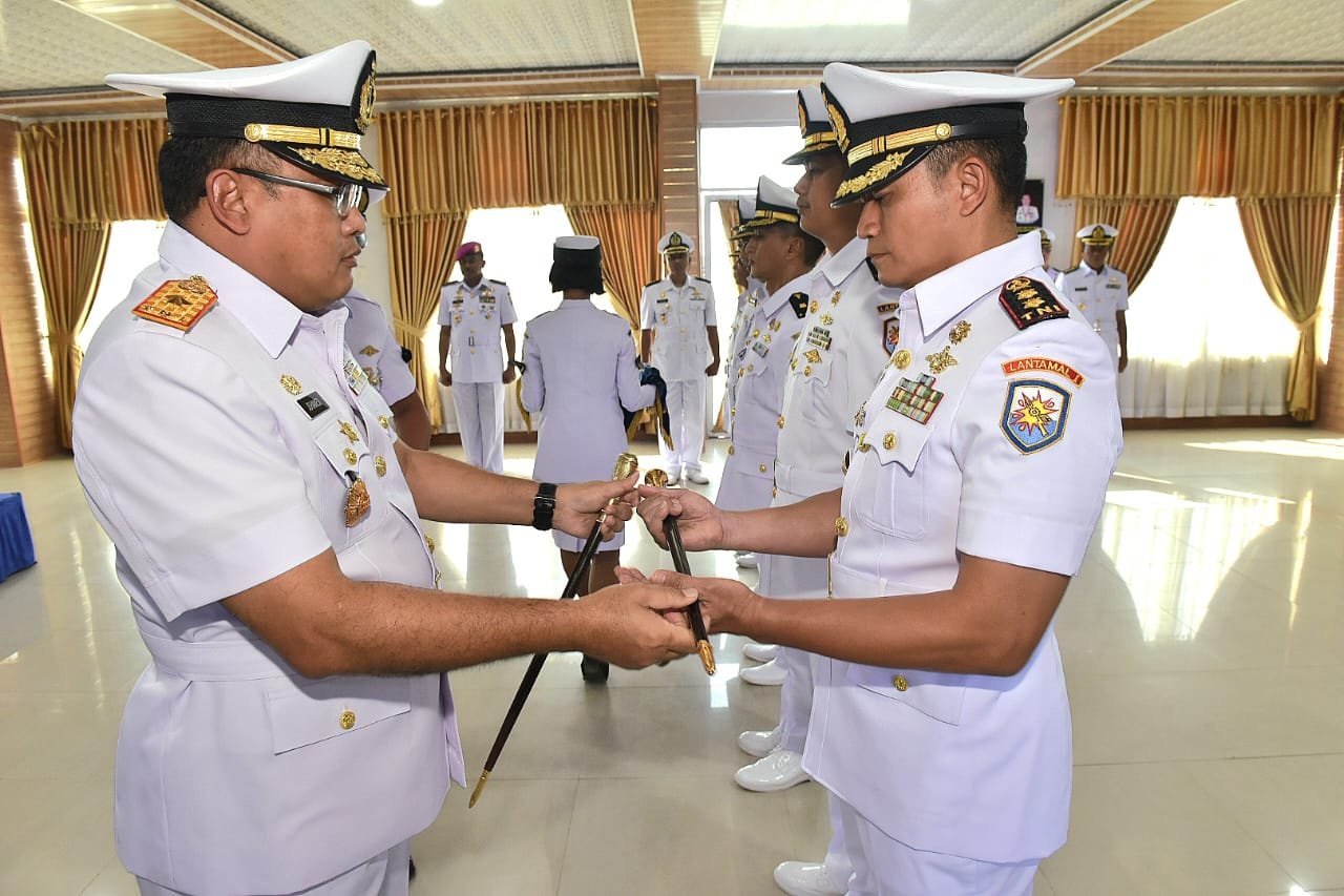 TNI AL, Lantamal I,- Komandan Pangkalan Utama TNI Angkatan Laut (Danlantamal) I Belawan Laksamana Pertama TNI Johanes Djanarko Wibowo memimpin Serah Terima Jabatan Kadisminpers Lantamal I dari Letkol Laut (KH) Zulfan Siregar, S.Ag., kepada Letkol Laut (KH) Udung Nurrahman, S.Ag., M.Han., Karumkit dr. Komang Makes dari Letkol Laut (K) dr. Rudyhard Edgar Hutagalung, Sp.OT., kepada Mayor Laut (K) dr. Agung Malinda Wijaya, Sp.OT., dan Dantim Intelijen Lantamal I dari Letkol Laut (P) Agung Dwi Handoko, M.Tr.Opsla., kepada Letkol Laut (S) Taufan Bagus Wicaksono M.Tr. Opsla., bertempat di Gedung R. Mulyadi Mako Lantamal I, Jalan Serma Hanafiah No. 1 Belawan, Medan, Sumatera Utara, Senin (19/12/2022).