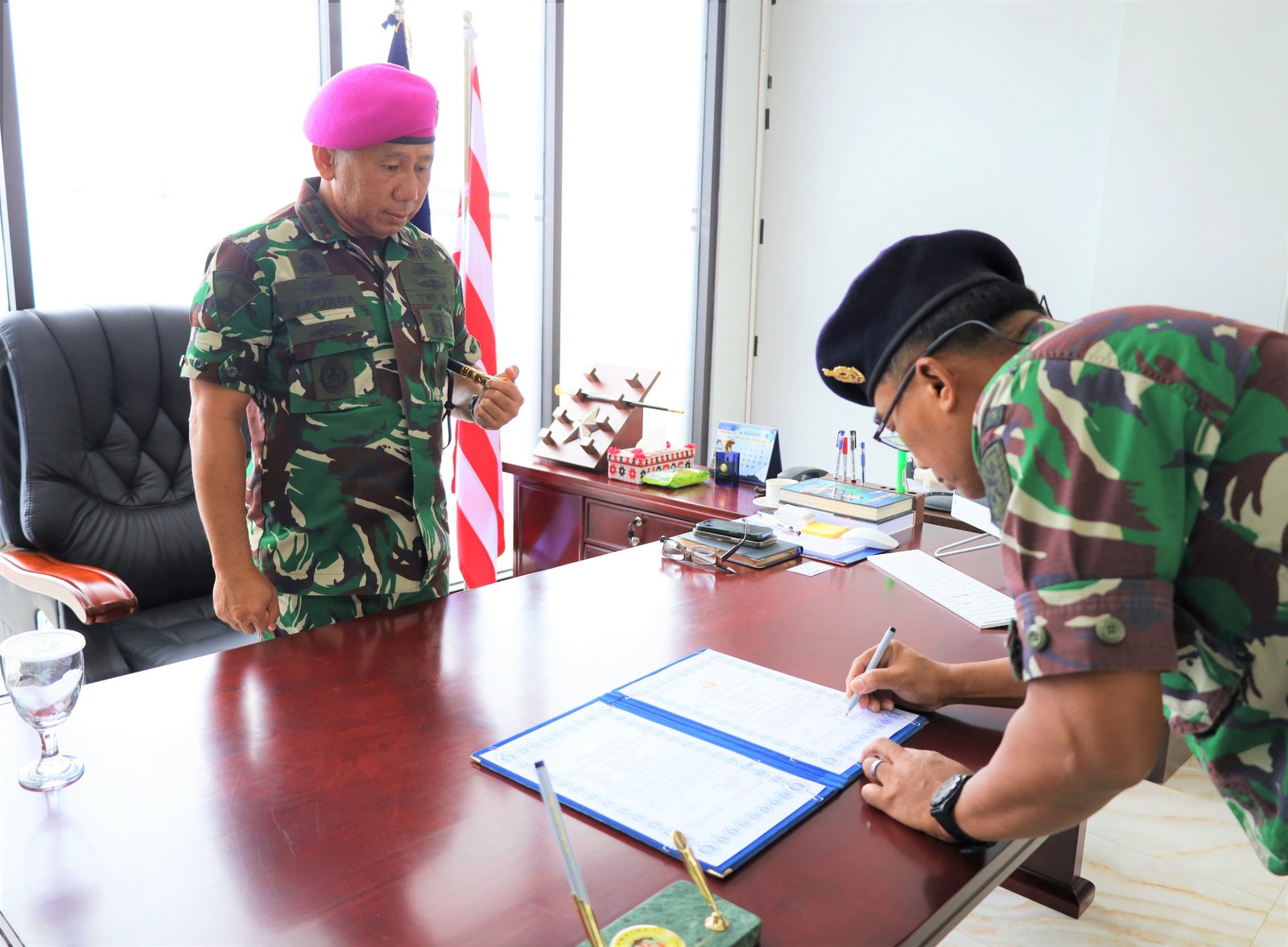 TNI AL, Belawan,- Komandan Pangkalan Utama TNI Angkatan Laut I (Danlantamal I) Kolonel Marinir Jasiman Purba, S.E., CHRMP., memimpin acara Serah Terima Jabatan Kadisharkan Lantamal I dari Letkol Laut (T) I Made Kurniawan kepada Komandan Lantamal I, bertempat di Ruang Kerja Komandan Lantamal I, Jalan Serma Hanafiah No. 01 Belawan, Sumatera Utara, Kamis (15/2/2024).