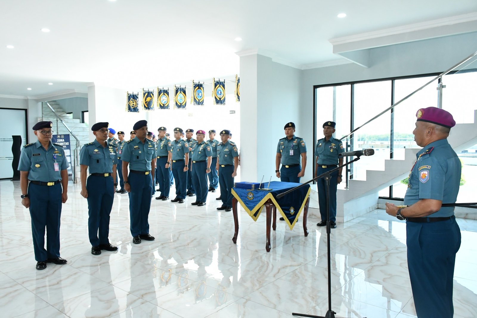 refubliknews.com, || TNI AL, Belawan,- Komandan Pangkalan Utama TNI Angkatan Laut I (Danlantamal I) Brigjen TNI (Mar) Jasiman Purba, S.E, CHRMP., memimpin Acara Serah Terima Jabatan (Sertijab) Ka Akun Lantamal I dari Letkol Laut (S) Dr. Heru Sancoko, S.Pd., M.M., kepada Mayor Laut (S) Totok Andi Setiawan, S.T., M.A. dan Pengukuhan Jabatan Kadisbek Lantamal I Mayor Laut (T) Didik Setyawan, S.T., M.M.T., bertempat di Mako Lantamal I Belawan, Sumatera Utara, Selasa (08/07/2025).