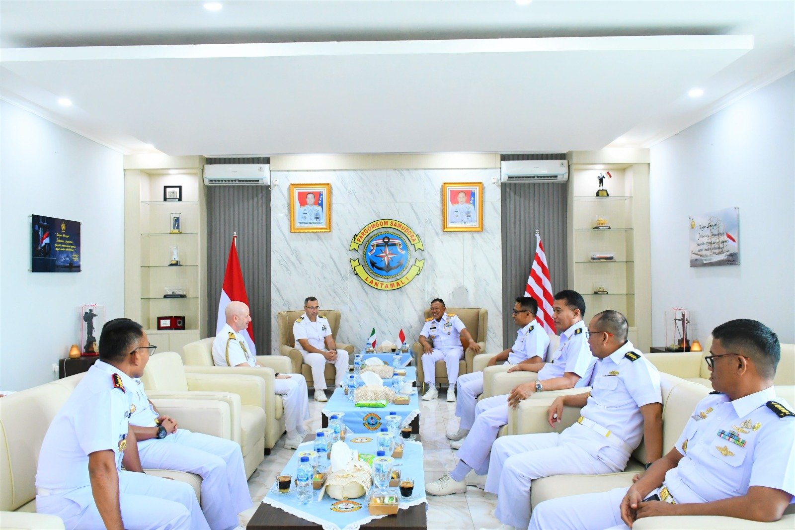 Komandan Lantamal I mengucapkan selamat datang di Belawan Sumatera Utara, suatu kehormatan besar bagi TNI Angkatan Laut khususnya Pangkalan Utama TNI Angkatan Laut I atas kunjungan ini. Saya ingin menyampaikan terima kasih dan sambutan hangat kepada Komandan ITS Amerigo Vespucci yang telah meluangkan waktu dalam perjalanan panjang untuk datang ke Belawan, Indonesia dalam kunjungan persahabatan. Kunjungan persahabatan ini penting untuk meningkatkan persaudaraan Angkatan Laut kedua negara, dan juga dapat meningkatkan hubungan bilateral antara pemerintah Indonesia dan pemerintah Italia.