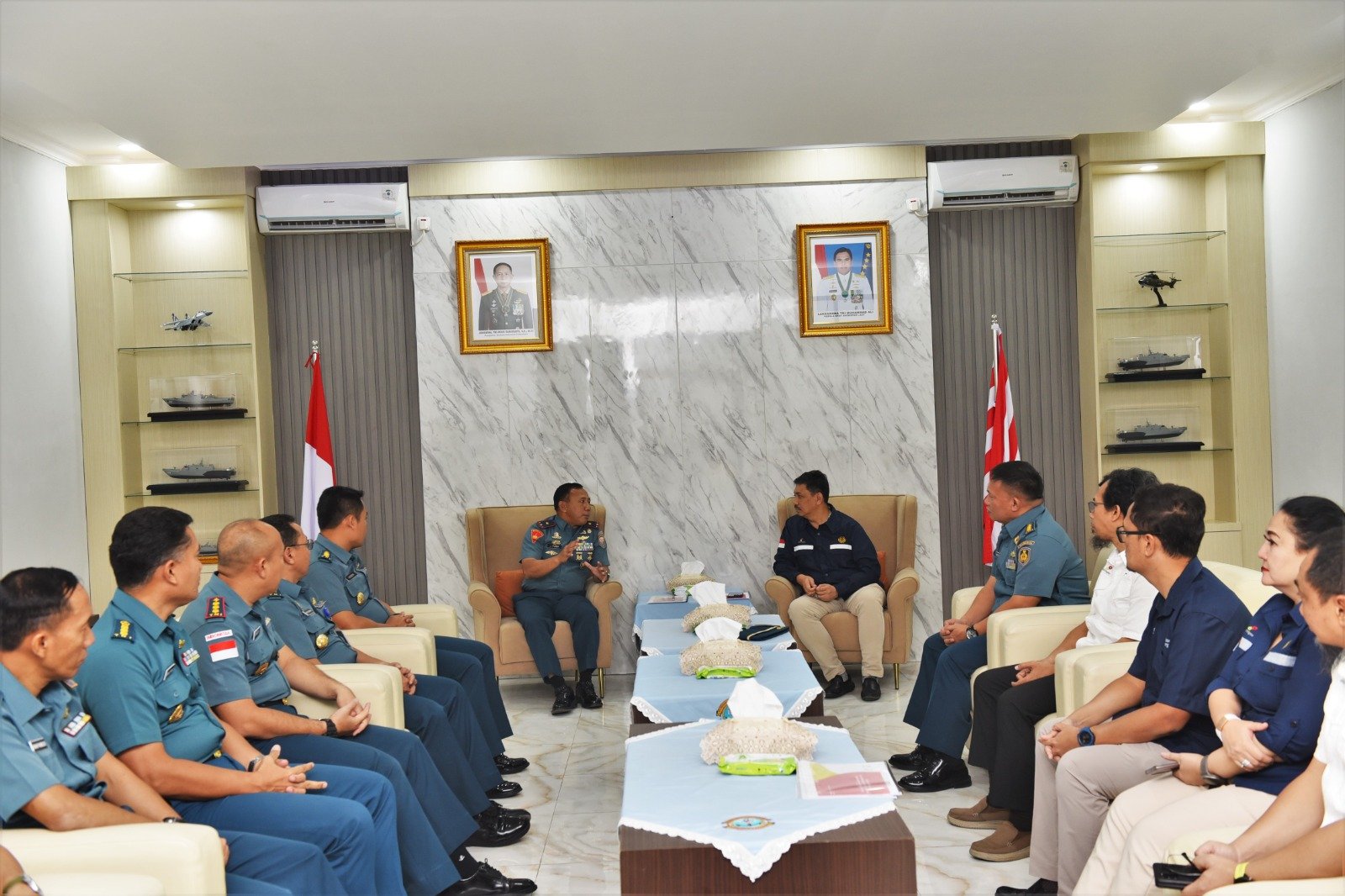 TNI AL, Belawan,- Komandan Pangkalan Utama TNI Angkatan Laut I (Danlantamal I) Brigjen TNI (Mar) Jasiman Purba, S.E., CHRMP., menerima kunjungan Kepala Departemen Sekuriti Satuan Kerja Khusus Pelaksanaan Kegiatan Usaha Hulu Minyak dan Gas Bumi (SKK MIGAS) Rudi Fajar dan Staf, beserta Pejabat Mabesal, bertempat di VIP Room Mako Lantamal I, Jalan Serma Hanafiah No. 01 Belawan, Sumatera Utara, Rabu (20/3/2024).