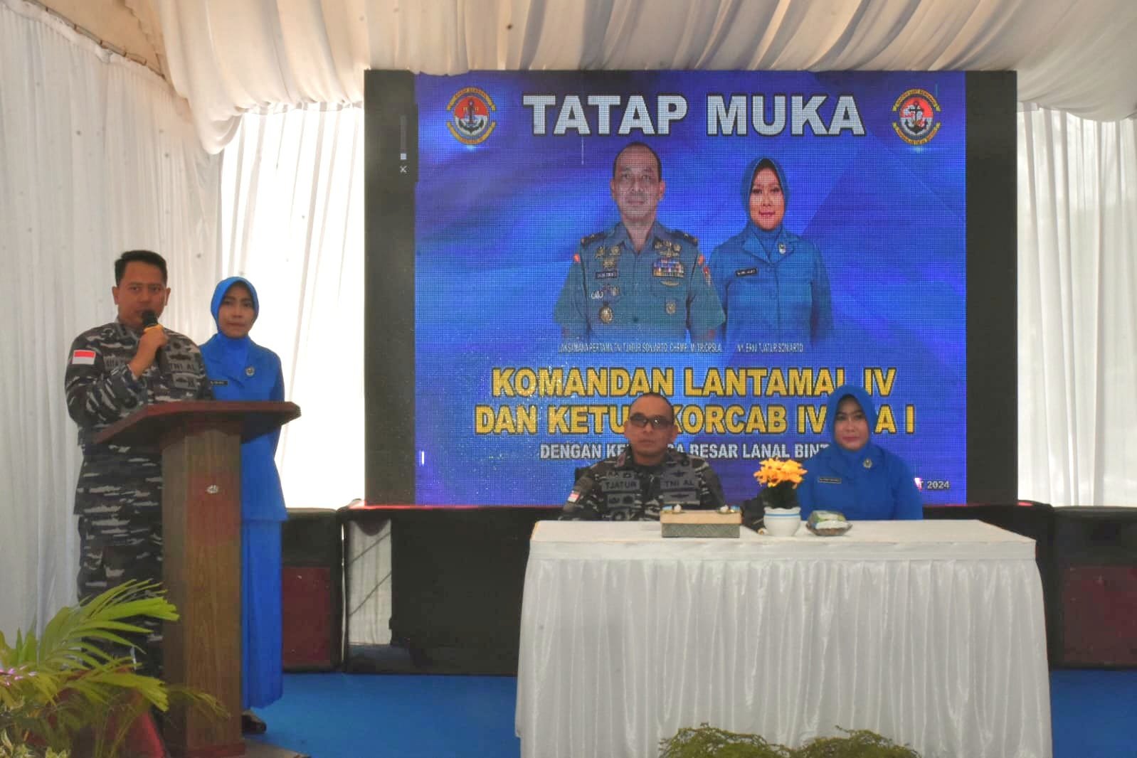 TNI AL, Bintan,- Danlantamal IV Batam Laksamana Pertama TNI Tjatur Soniarto CHRMP., M.Tr. Opsla., didampingi Ketua Korcab IV DJA I Ny. Erni Tjatur Soniarto, melaksanakan Tatap Muka dengan Prajurit Lanal Bintan beserta anggota Jalasenastri Cabang 5 Korcab IV DJA I, bertempat di Halaman Mako Lanal Bintan, Jalan Jenderal Sudirman No.10, Tanjung Uban Kota, Kecamatan Bintan Utara, Kabupaten Bintan, Rabu (20/03/2024).