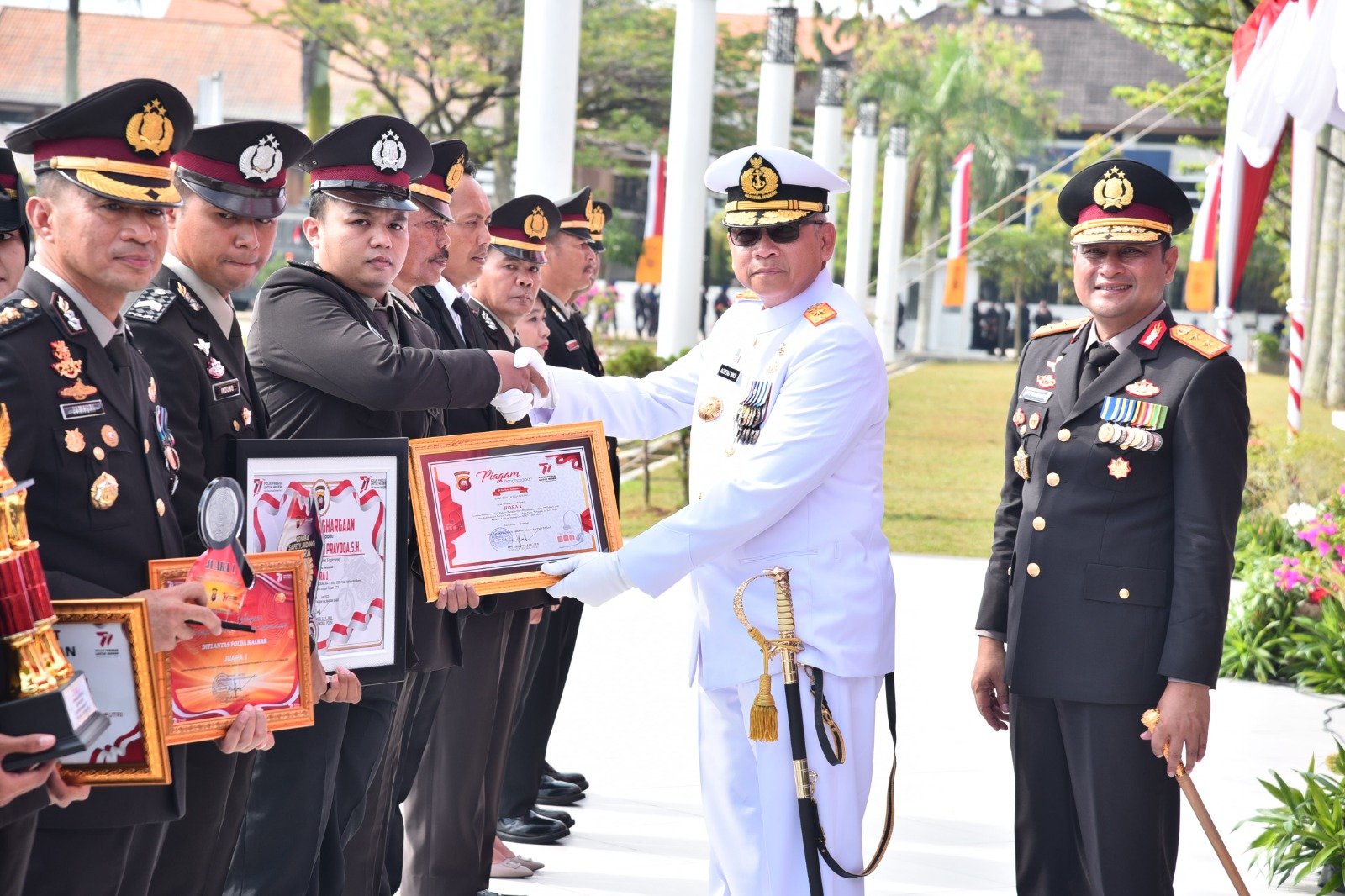 TNI AL, Lantamal XII,- Komandan Pangkalan Utama TNI Angkatan Laut (Danlantamal) XII Laksamana Pertama TNI Agoeng MKS menghadiri Upacara Peringatan Hari Bhayangkara ke-77 yang dilaksanakan di Halaman Kantor Gubernur Kalimantan Barat, Sabtu (1/7/2023).