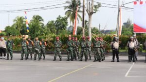 refubliknews.com, – TNI AL, Belawan,- Komandan Pangkalan Utama TNI Angkatan Laut I (Danlantamal I) Brigjen TNI (Mar) Jasiman Purba, S.E., CHRMP., diwakili Danpomal Lantamal I Letkol Laut (PM) Jatnika Setiabudi serta Danyonmarhanlan I Mayor (Mar) Remon Dabukke menghadiri Simulasi Sispamkota Operasi Mantap Praja Toba Tahun 2024, bertempat di Halaman Mako Polres Belawan, Senin (02/9/2024).