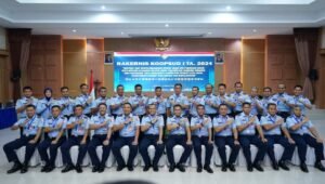 TNI AU – Lanud SUT, Jakarta. Komandan Lanud Sutan Sjahrir Kolonel Nav Sani Salman Nuryadin hadir dan ikuti Rakernis Koops Udara I TA. 2024 bertempat di Gedung Roesmin Nurjadin, Makoopsud I, Jakarta. Senin, (4/3/2024).