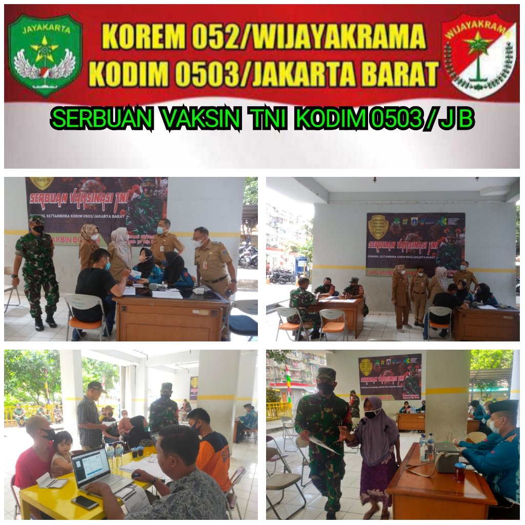 Kodam Jaya Jakarta -Danramil 02/TB Kapten Inf Arja Suarja pantau kegiatan serbuan vaksinasi TNI Kodim 0503/JB Bekerja sama dengan Koramil 02/TB dengan jenis vaksin Pfizer Dosis1,2 dan booster dosis 3 oleh pelaksana tim nakes Kesdam Jaya dipimpin Letda Ckm dr. Anita