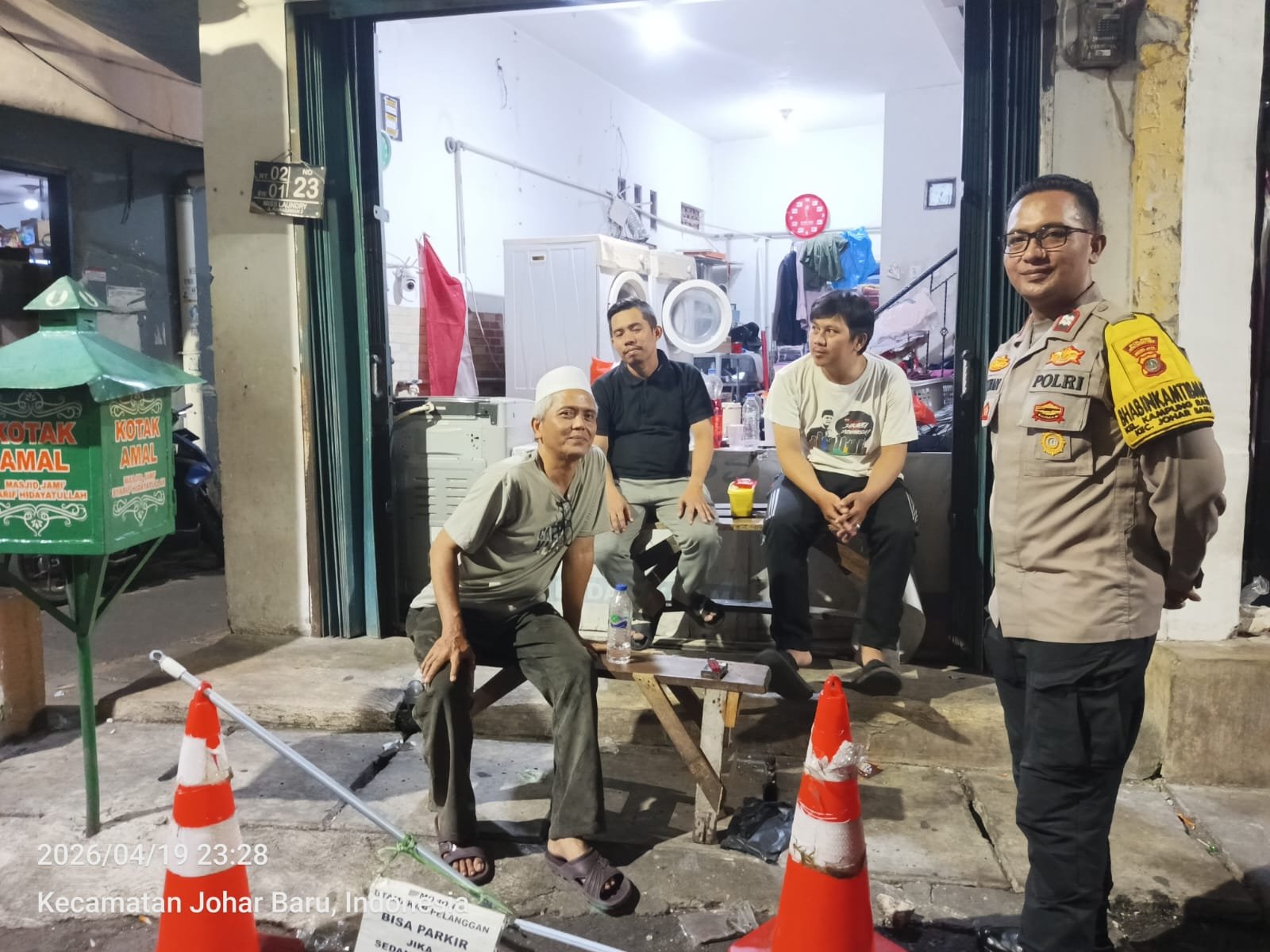 Jakarta Pusat – Dalam rangka menjaga stabilitas keamanan dan ketertiban masyarakat (kamtibmas), Bhabinkamtibmas Kelurahan Kampung Rawa melaksanakan kegiatan cooling system, patroli wilayah, serta door to door system (DDS) sambang lingkungan di RT 13 RW 01, Kelurahan Kampung Rawa, Kecamatan Johar Baru, Jakarta Pusat, pada Minggu malam (19/4/2026) pukul 23.18 WIB.