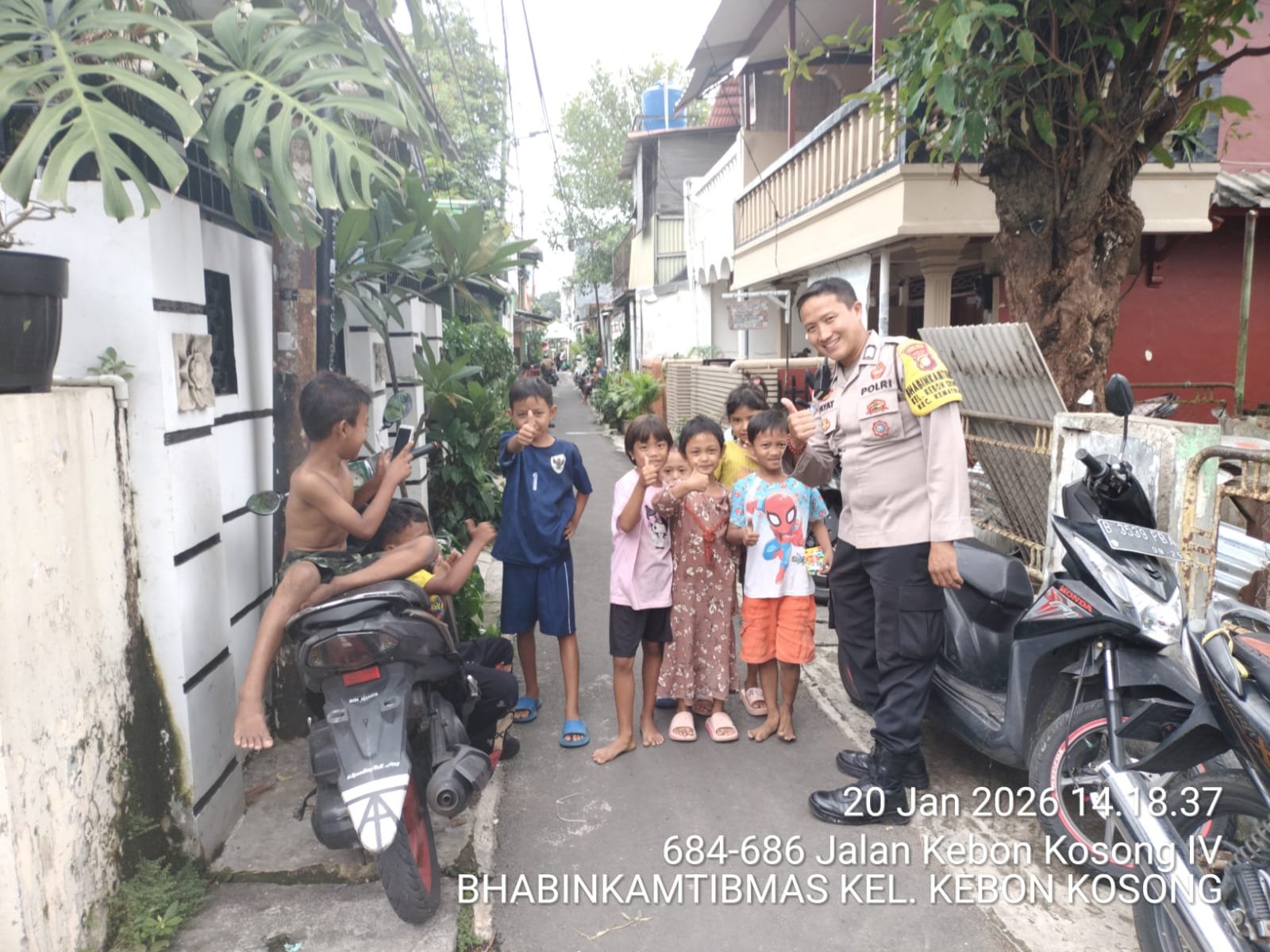 Jakarta Pusat — Kepolisian terus membangun kedekatan dengan masyarakat melalui pendekatan humanis. Salah satunya dilakukan oleh Bhabinkamtibmas Kelurahan Kebon Kosong, Brigadir Yayat Ruhiyat, yang melaksanakan kegiatan sambang kepada anak-anak yang tengah bermain di lingkungan permukiman warga, Selasa (20/1/2026).