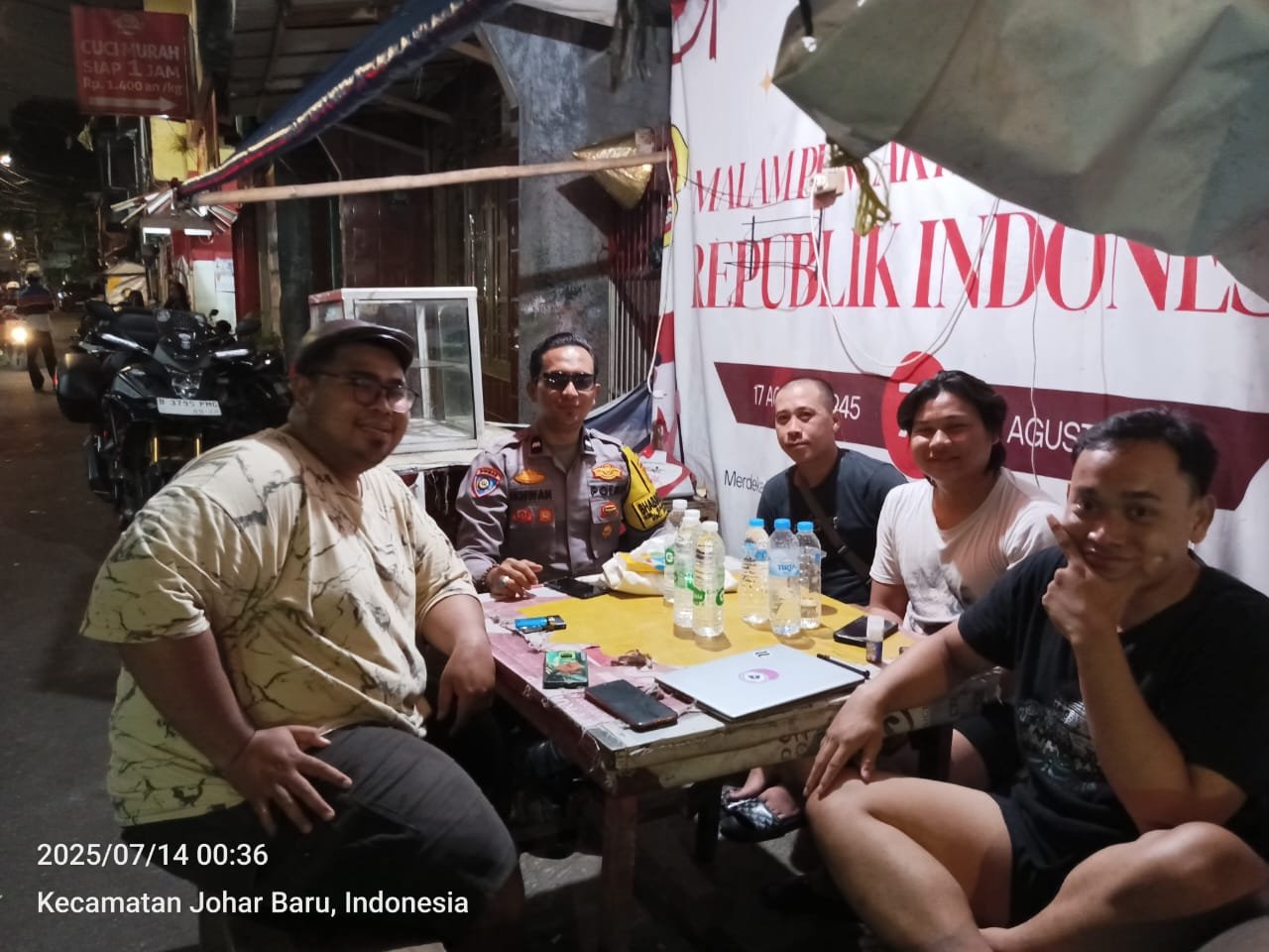 refubliknews.com, || Jakarta Pusat — Dalam rangka memperkuat sinergi dengan elemen masyarakat, Bhabinkamtibmas Kelurahan Kampung Rawa Aipda Ikhwan melaksanakan patroli sambang dan dialog kamtibmas di wilayah RT 08 RW 02, Jalan Rawa Sawah IV, Kelurahan Kampung Rawa, Kecamatan Johar Baru, Jakarta Pusat, pada Senin dini hari (14/7/2025) pukul 00.50 WIB.