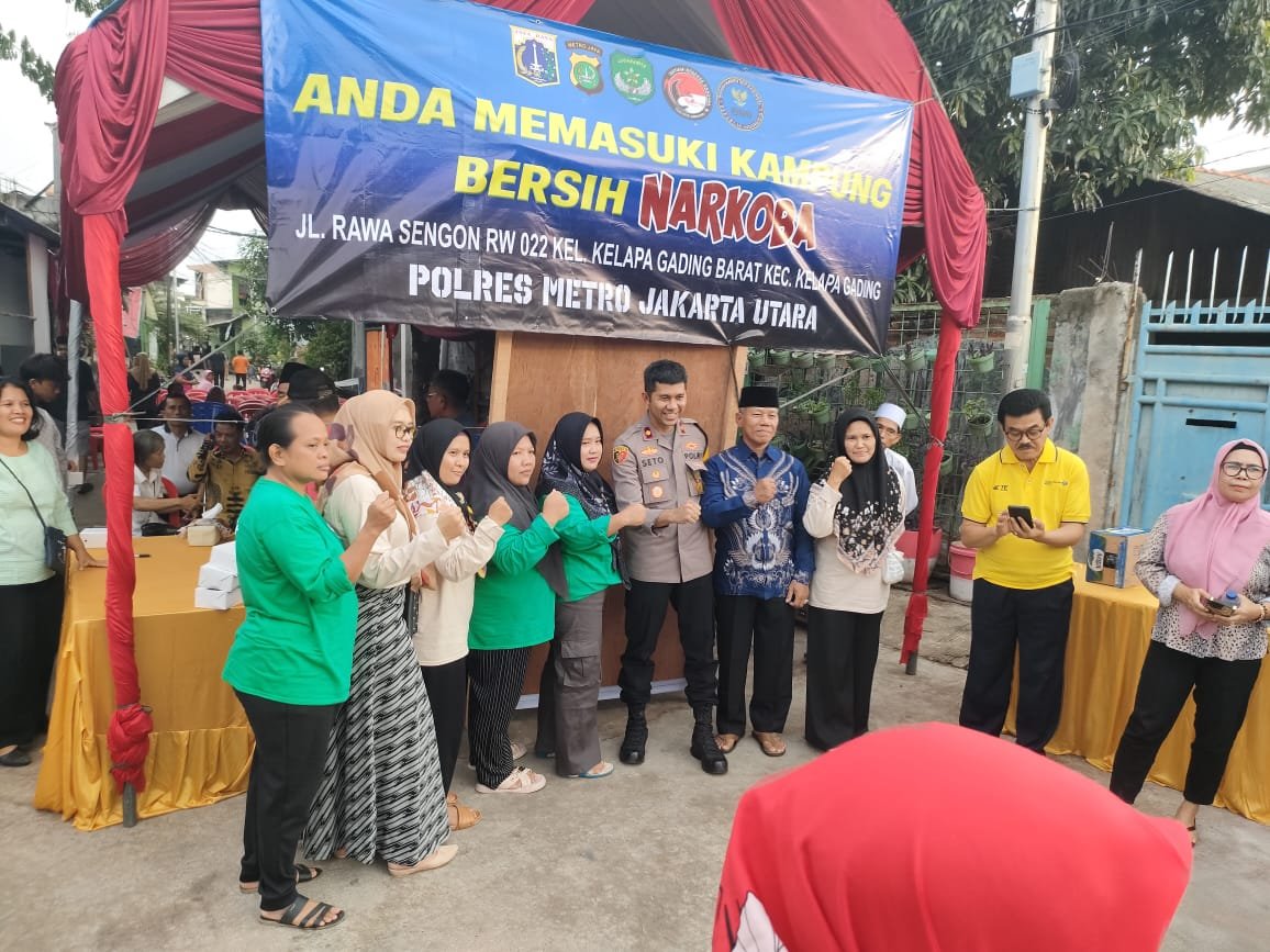 refubliknews.com,- JAKARTA – Polres Metro Jakarta Utara melalui Satuan Reserse Narkoba menggelar deklarasi Kampung Bersih Narkoba di Jl. Rawa Sengon RW 022, Kelurahan Kelapa Gading Barat, Kecamatan Kelapa Gading. Kegiatan ini bertujuan menciptakan lingkungan yang bebas dari penyalahgunaan narkotika, Sabtu ( 7/12/2024).