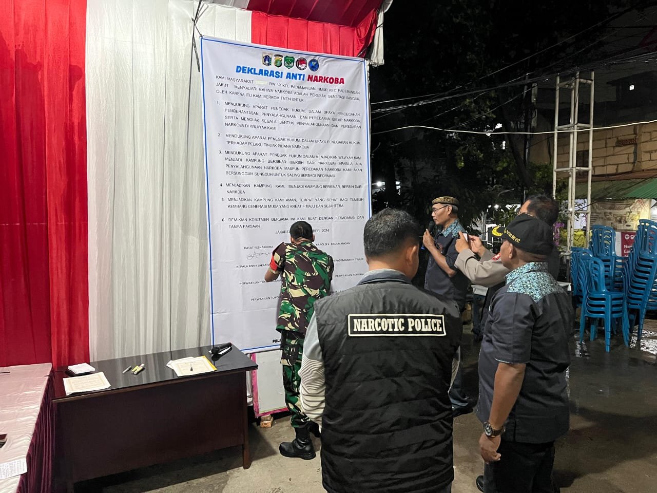 Senada dengan itu, Kanit Reskrim Polsek Pademangan, AKP I Gede Gustiana Wijaya Kusuma, menegaskan pentingnya peran aktif masyarakat dalam pencegahan narkoba. “Deklarasi ini adalah inisiatif warga sendiri. Saya sangat mengapresiasi langkah ini sebagai bentuk kepedulian terhadap generasi muda dan keamanan lingkungan,” tuturnya.