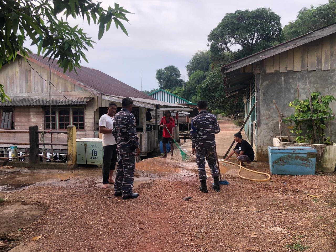 refubliknews.com, || TNI AL, Dabo Singkep,- Tunjukan semangat gotong royong, Personel Posal Pulau Mas bersama Masyarakat Desa Posek, Pulau Mas Bangsal bersihkan area pelabuhan, Sabtu (12/7/2025).