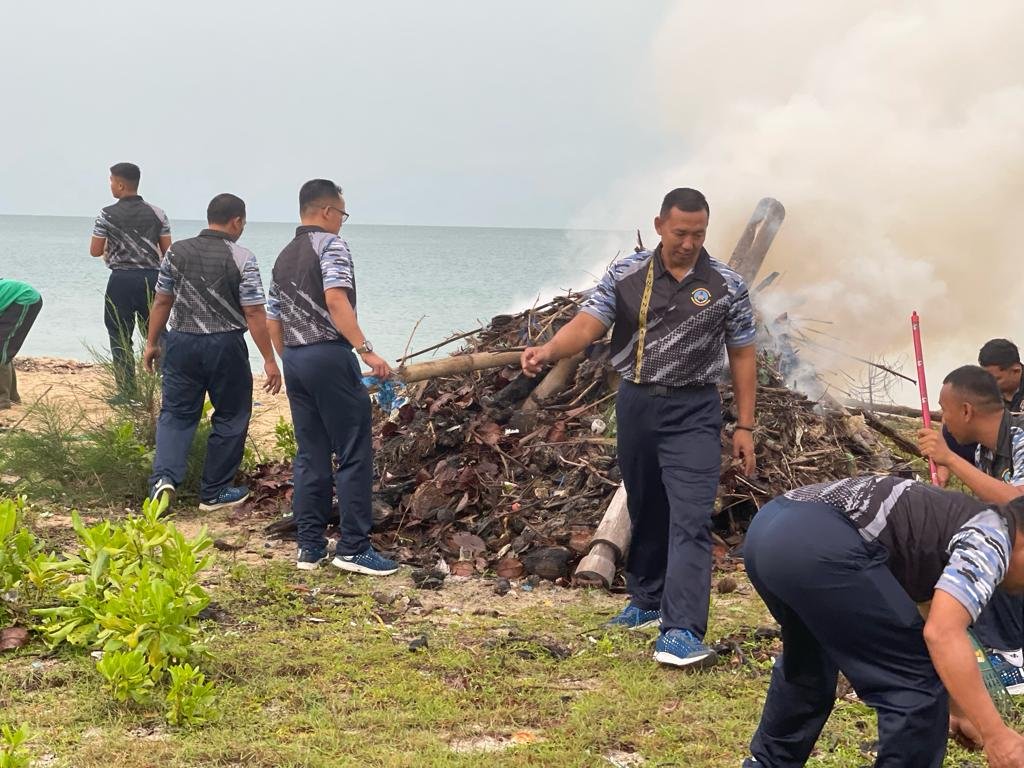 TNI AL, Dabo Singkep,- Dalam rangka menjaga dan memelihara kelestarian, keindahan serta kebersihan lingkungan pantai, segenap Prajurit Lanal Dabo Singkep bersama Puslatpur Marinir 9 Dabo Singkep, melaksanakan Kerja Bakti Bersih-Bersih Pantai Todak, Jumat (12/01/2024).