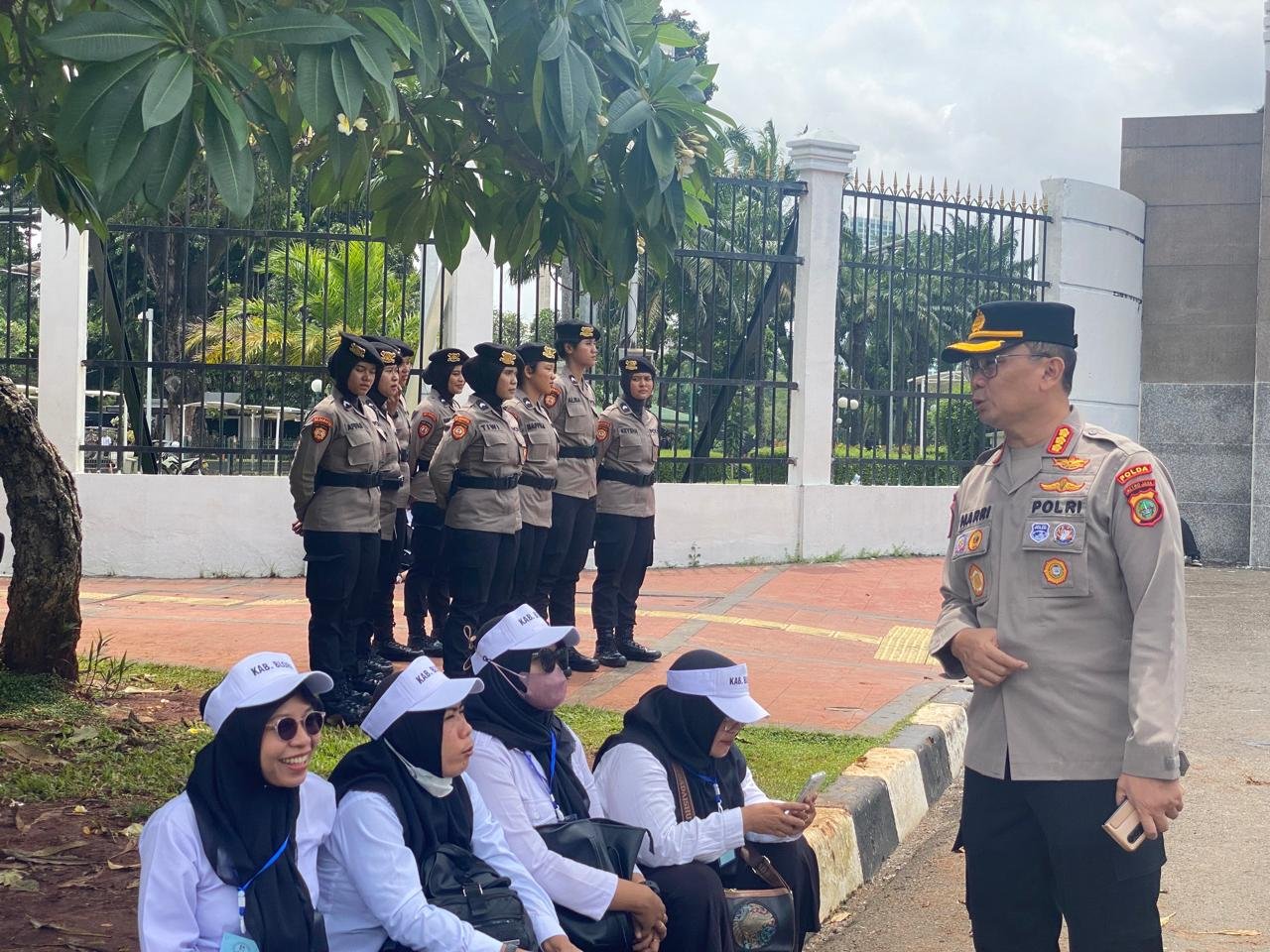 Polda Metro Jaya menerjunkan personel untuk memastikan jalannya aksi tetap aman dan kondusif. Pengamanan dipimpin langsung oleh Dirbinmas Polda Metro Jaya, Kombes Pol Harry Muharram Firmansyah.