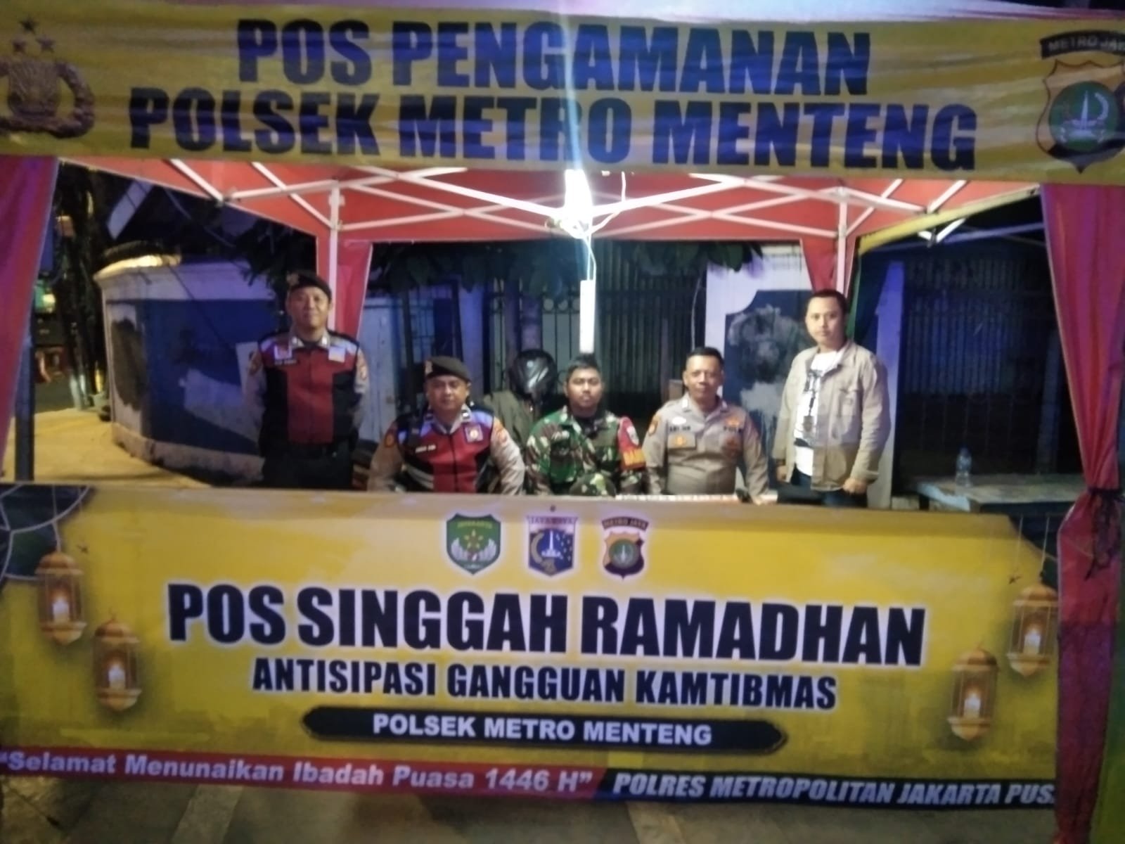 Personel gabungan dari Polsek Metro Menteng, yang terdiri dari IPTU Waluyo, Bripka Ari Novi, dan Brigadir Kevin, melaksanakan pemantauan di Pos Singgah Ramadhan Tambak sebagai langkah antisipasi terhadap potensi gangguan kamtibmas serta aksi balap liar di wilayah tersebut, terutama menjelang waktu sahur.