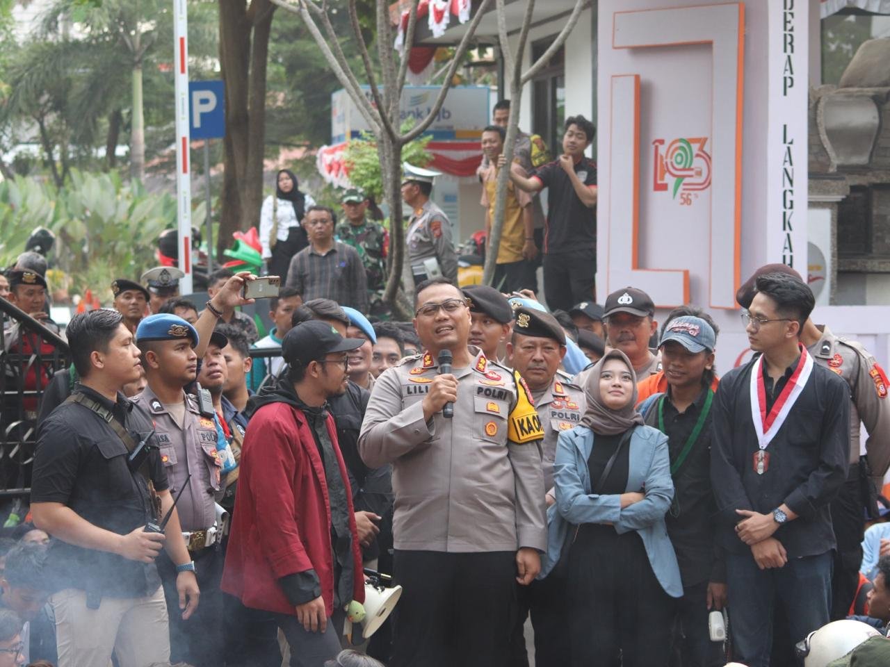 refubliknews.com, – Purwakarta – Kapolres Purwakarta, AKBP Lilik Ardiansyah turun langsung memantau dan melakukan pengamanan aksi mahasiswa dari Aliansi BEM Purwakarta dalam rangka mengawal putusan Mahkamah Konstitusi (MK) secara humanis,
