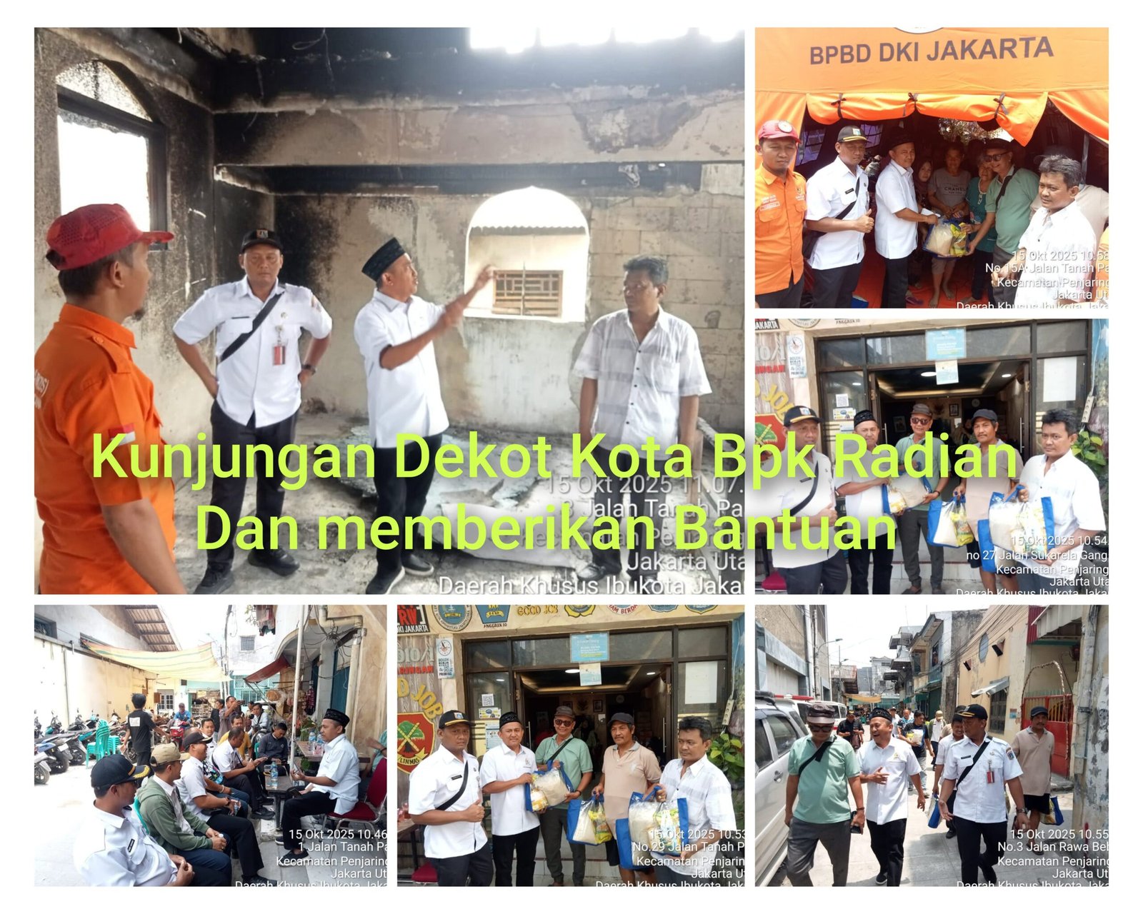 refubliknews.com,- Kunjungan Dewan Kota administrasi Jakarta Utara Radian Azhar bersama Sekertaris Kelurahan Penjaringan Kristanto meninjau posko utama bantuan kebakaran yang berpusat di kantor Rw.010 Kelurahan Penjaringan Jakarta Utara 16/10/2025