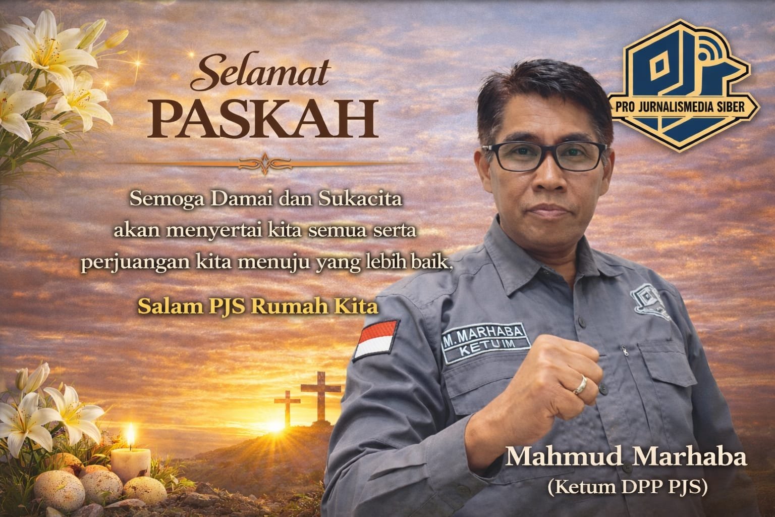 “Selamat Perayaan Paskah 2026 kepada seluruh saudara-saudari umat Kristiani. Semoga damai dan sukacita Paskah senantiasa menyertai kita semua, serta menjadi kekuatan dalam melangkah menuju kehidupan yang lebih harmonis, penuh kasih, dan berkeadilan,” ujar Mahmud Marhaban.