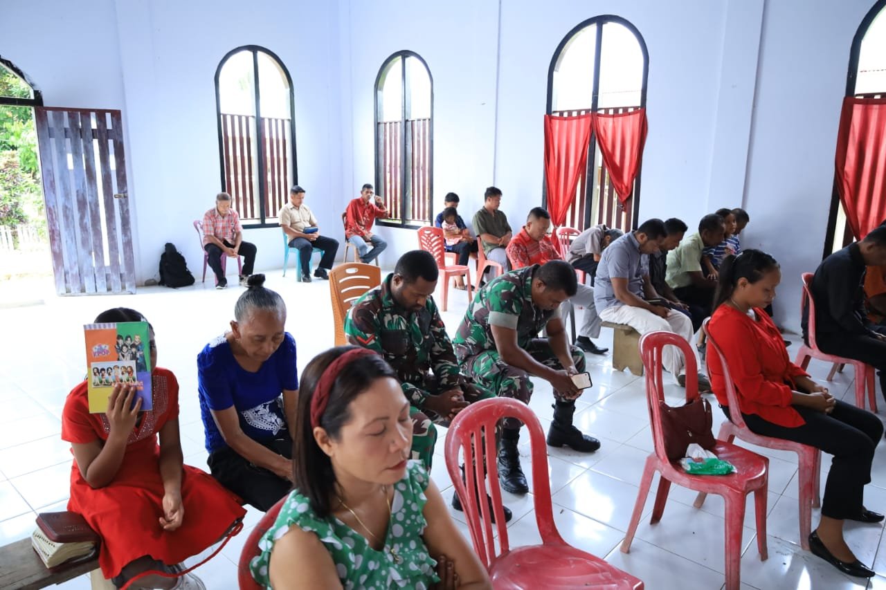 Kegiatan ibadah tersebut berlangsung khidmat di Gereja Dusun Lumaito, Desa Lifofa, Kecamatan Oba Selatan, Kota Tidore Kepulauan. Kehadiran anggota Satgas TMMD di tengah-tengah jemaat menjadi wujud kebersamaan dan kedekatan TNI dengan masyarakat, tidak hanya dalam bekerja membangun infrastruktur desa, tetapi juga dalam mempererat hubungan spiritual dan sosial.