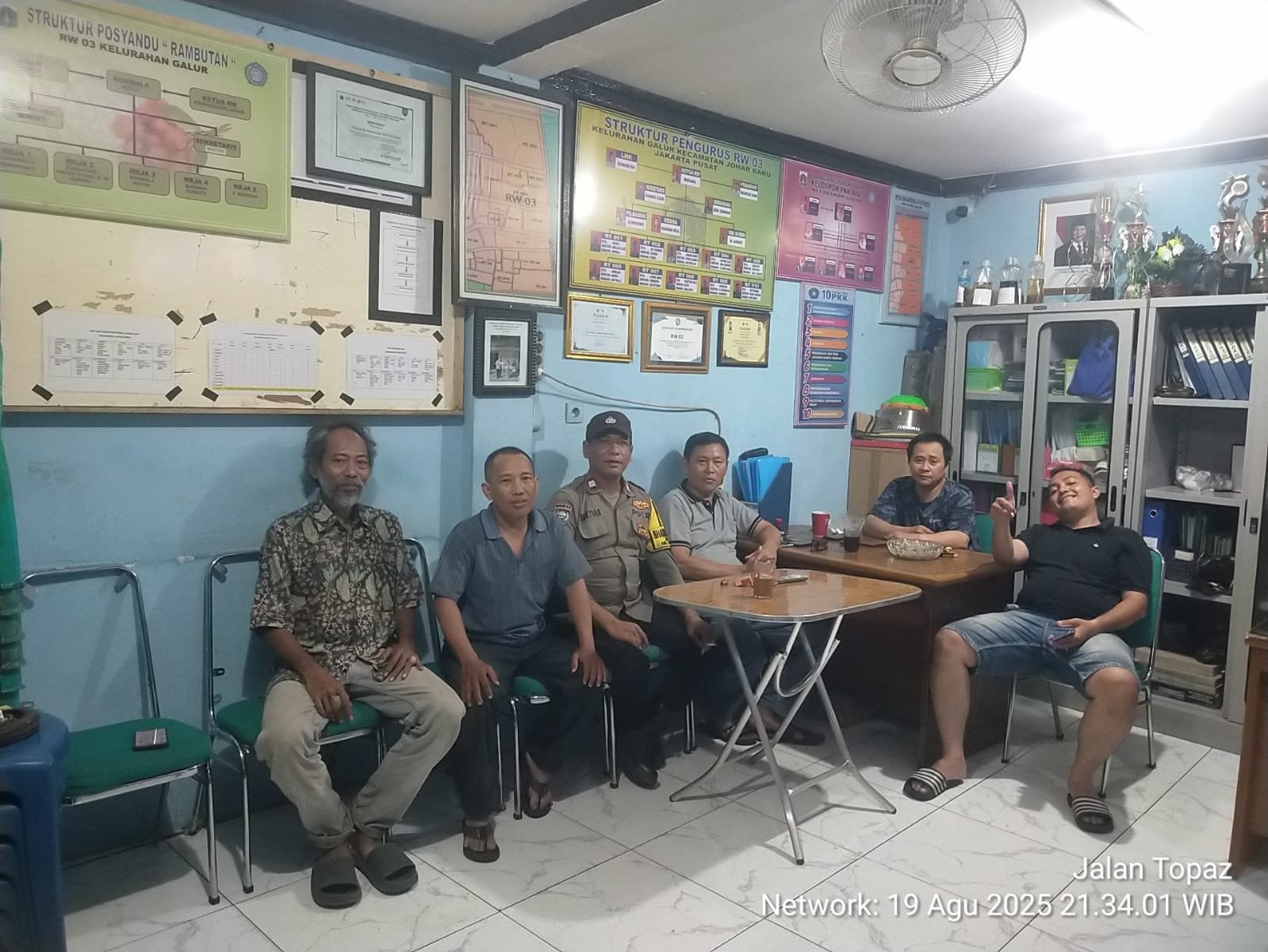 refubliknews.com, || Jakarta Pusat – Bhabinkamtibmas Kelurahan Galur, Aiptu Baktiar, melaksanakan kegiatan sambang pos kamling di Balai Warga RW 03, Jalan Topaz, Kelurahan Galur, Kecamatan Johar Baru, pada Selasa malam (19/8/2025) pukul 20.00 WIB.